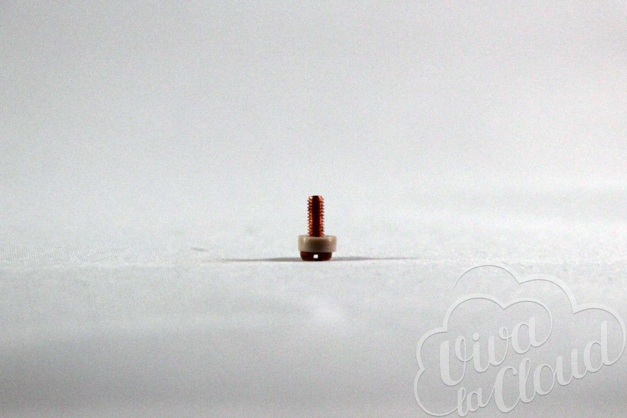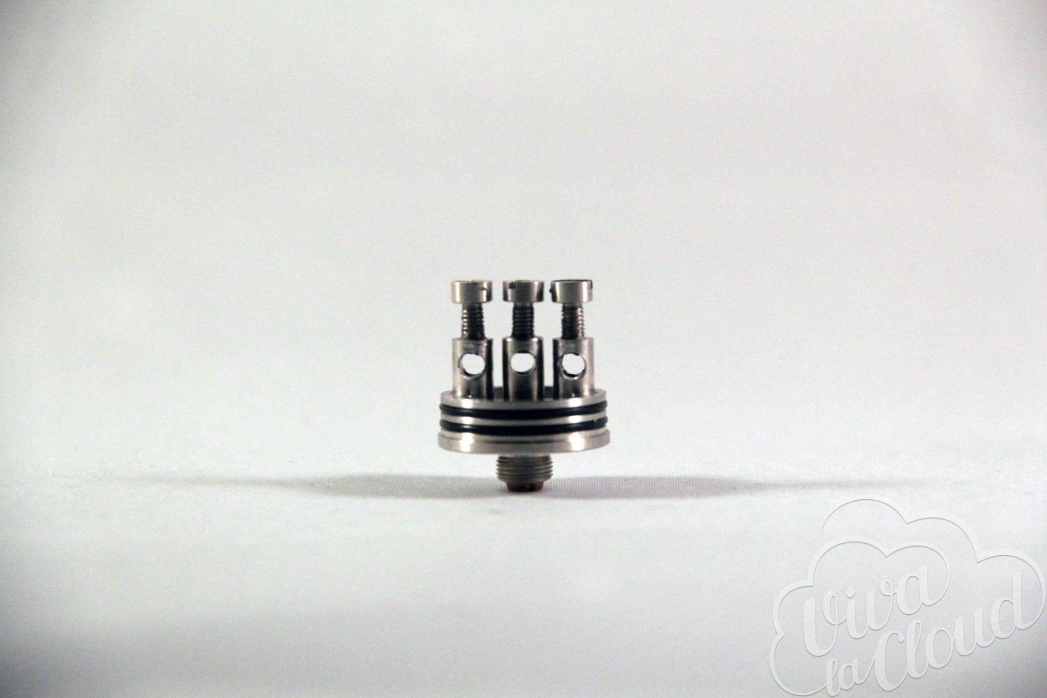 Для установки спирали в дрипку предусмотрены 3 стойки, минусовые являются частью базы — классика среди клаучейсерских дрипок. Отверстия для установки спиралей диаметром в 3 мм позволяют установить практические любые билды, которые могут придти вам на ум. Болты также легко позволят вам зафиксировать даже самый толстый кантал.
