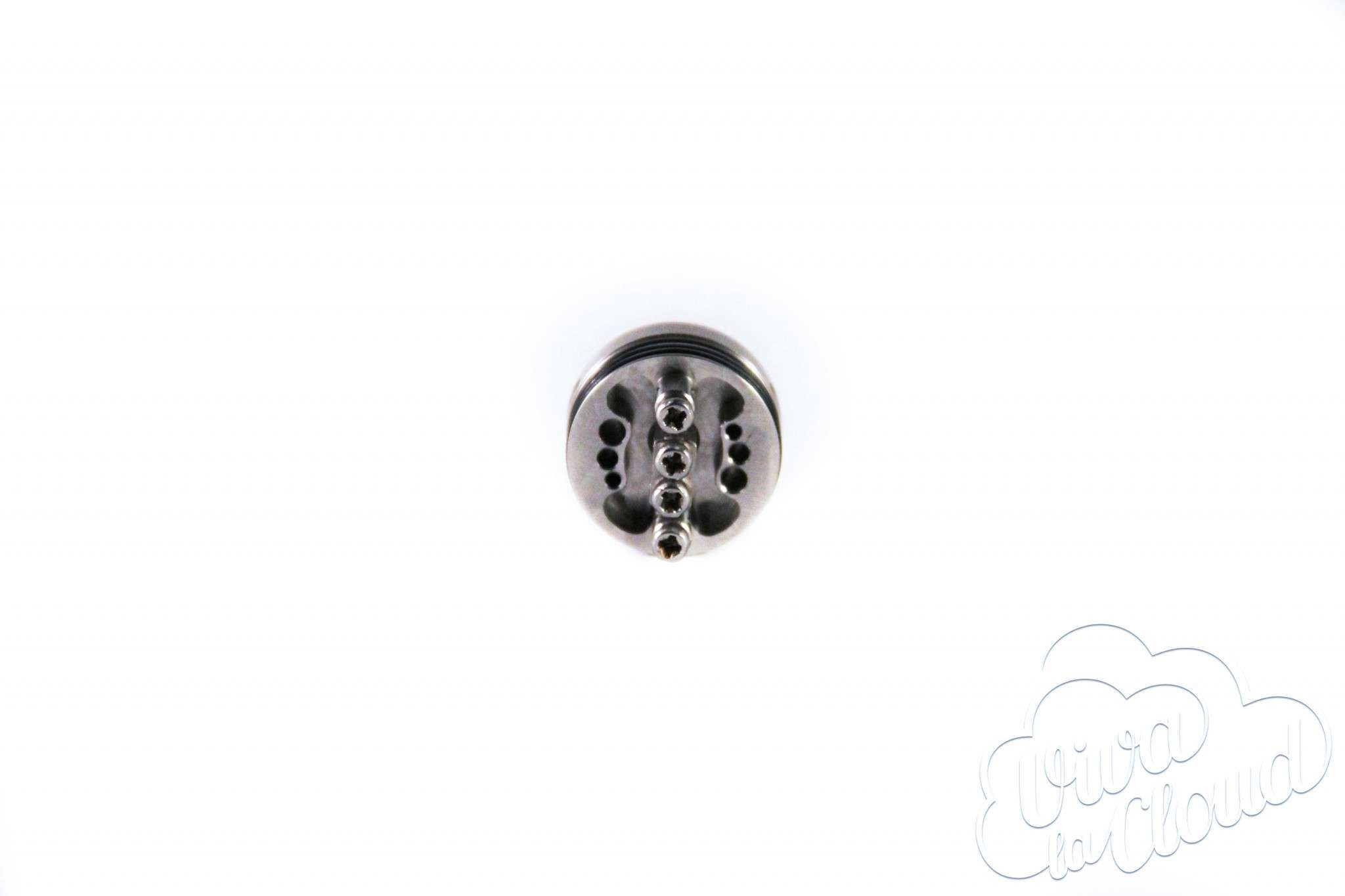 Пин коннектора выполнен из меди и покрыт серебром. Подобная комбинация позволяет значительным образом уменьшить просадки. Также пин имеет возможность регулировки и выступает достаточно, чтобы использовать Mutation Xv4 с гибридными механическими модами. На нижней части дрипки выгравировано название девайса, номер и надпись “Developed in USA” (разработано в США).