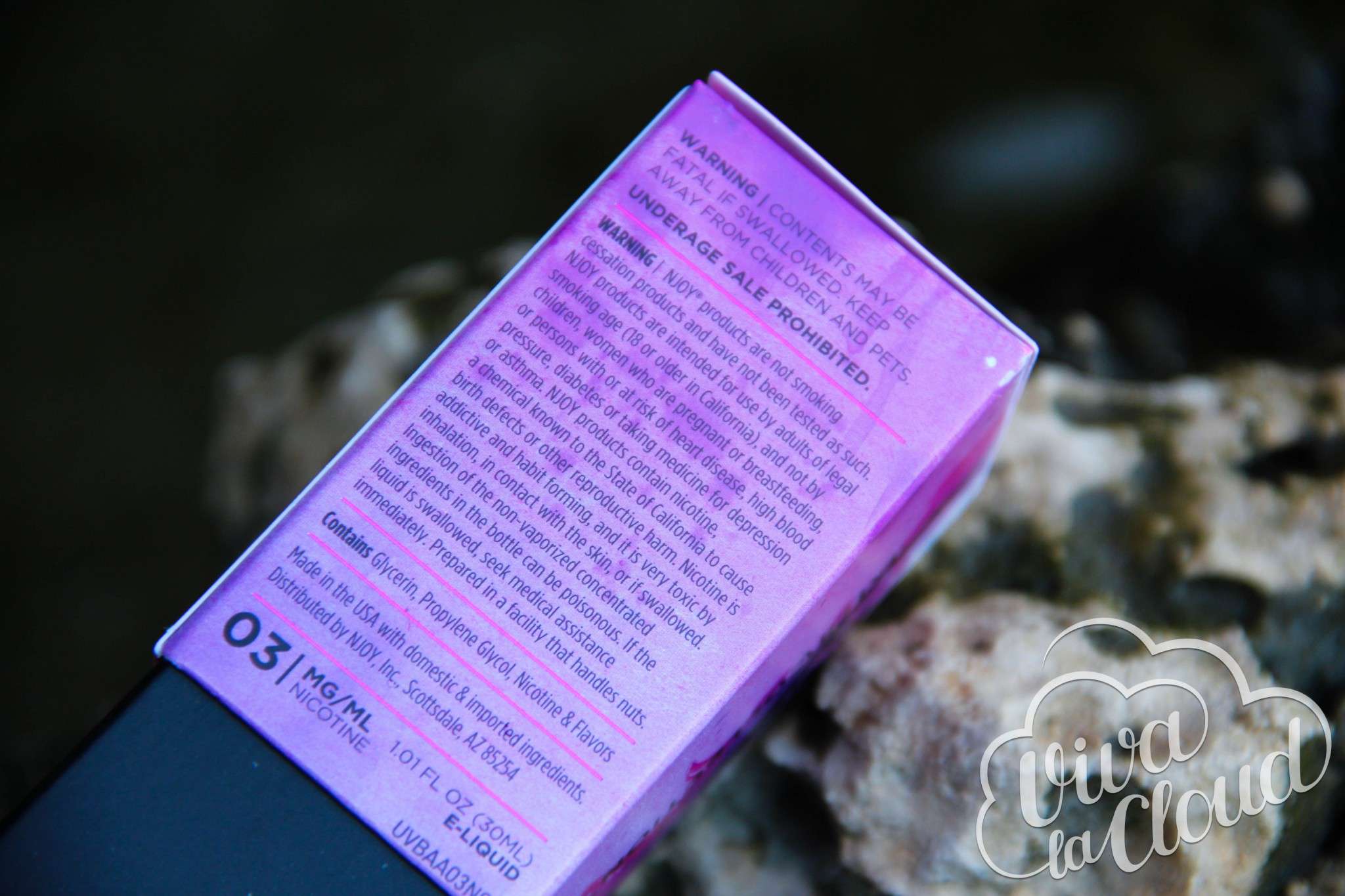 Также на упаковке есть вся информация с предупреждениями о том, что жидкость не предназначена для потребления внутрь, а кроме того людям младше 18 лет. Плюс, есть полное описание вкуса и основных компонентов, что очень здорово.