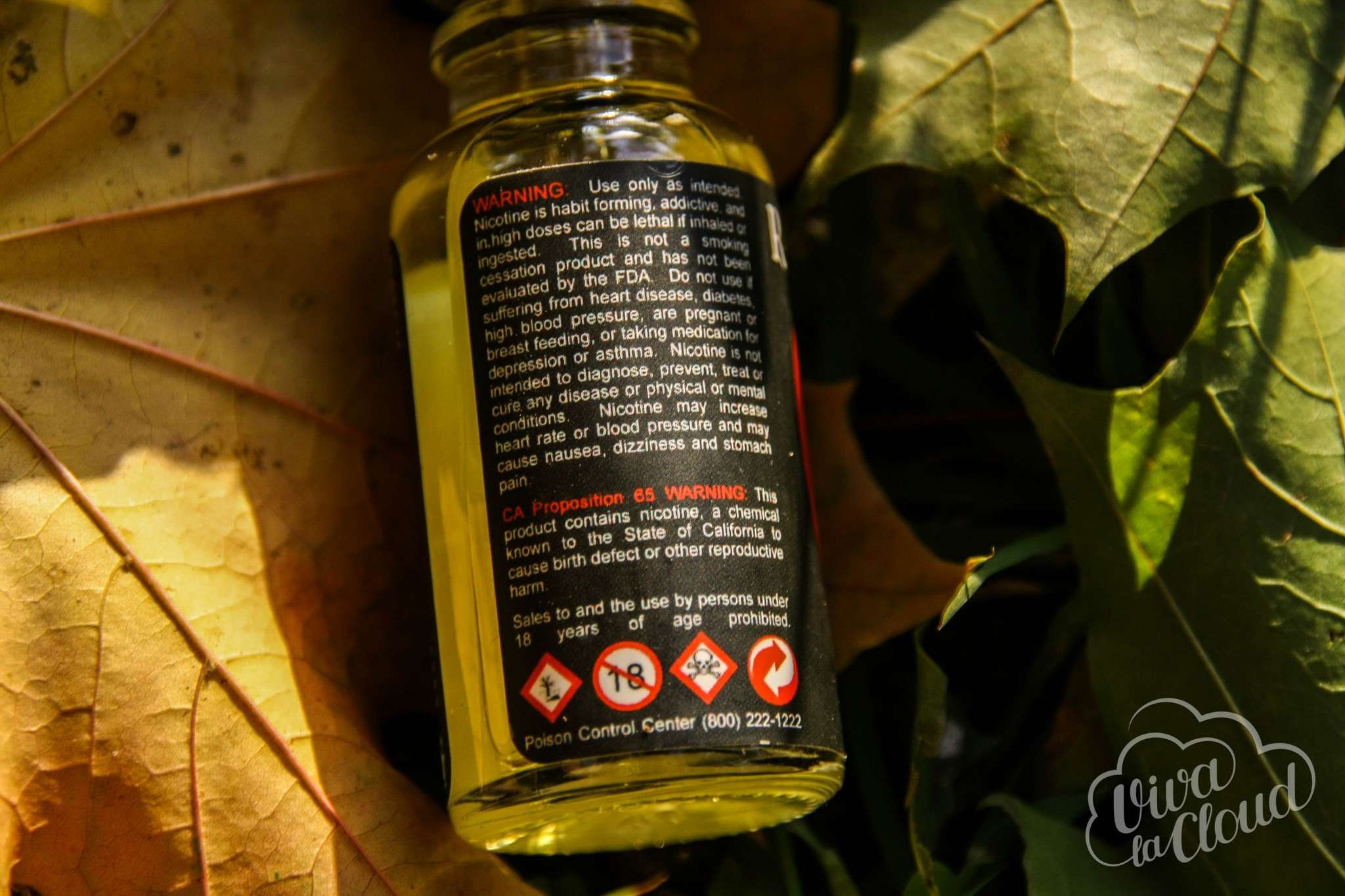 Сами бутыльки очень качественные: защита от детей, большое горлышко, отличная пипетка, прекрасная этикетка. На левой стороне расположены различные предупреждения, а на правой — контакты производителя, крепость и объём.