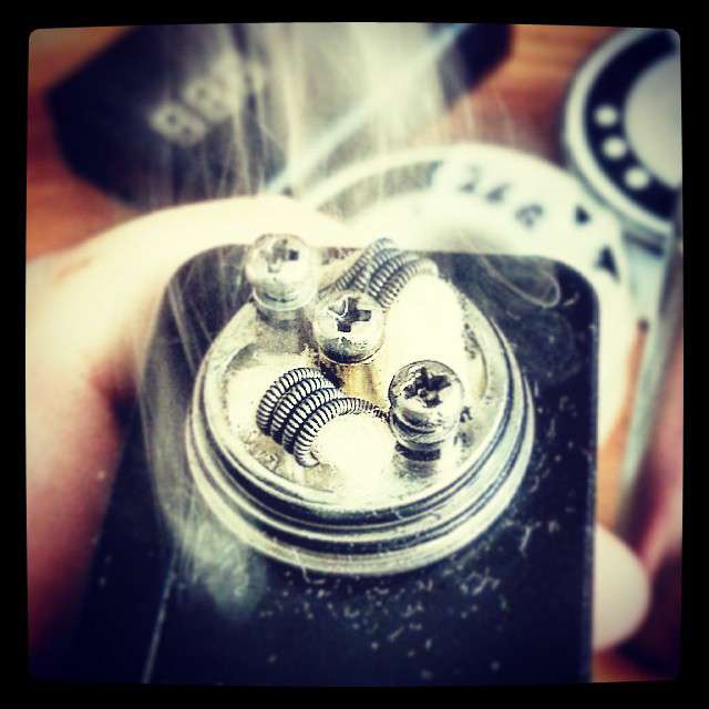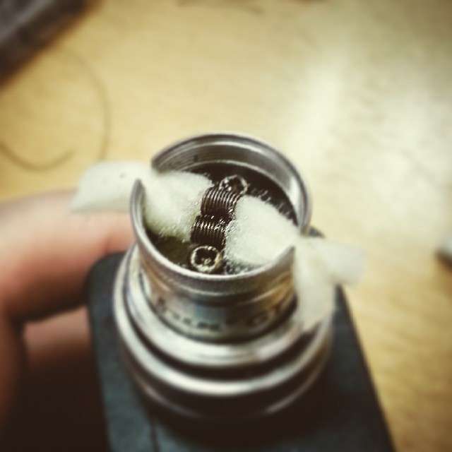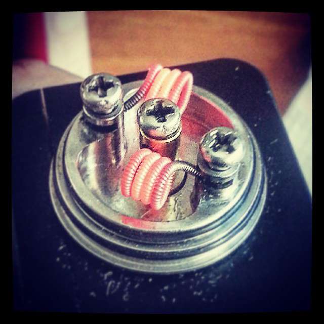 В соревнованиях до Russki Vape я не участвовал, побаивался. Но здесь я решил использовать стандартную для меня намотку — параллель из 0.51 кантала, 6 витков на оправу 2.5 мм.