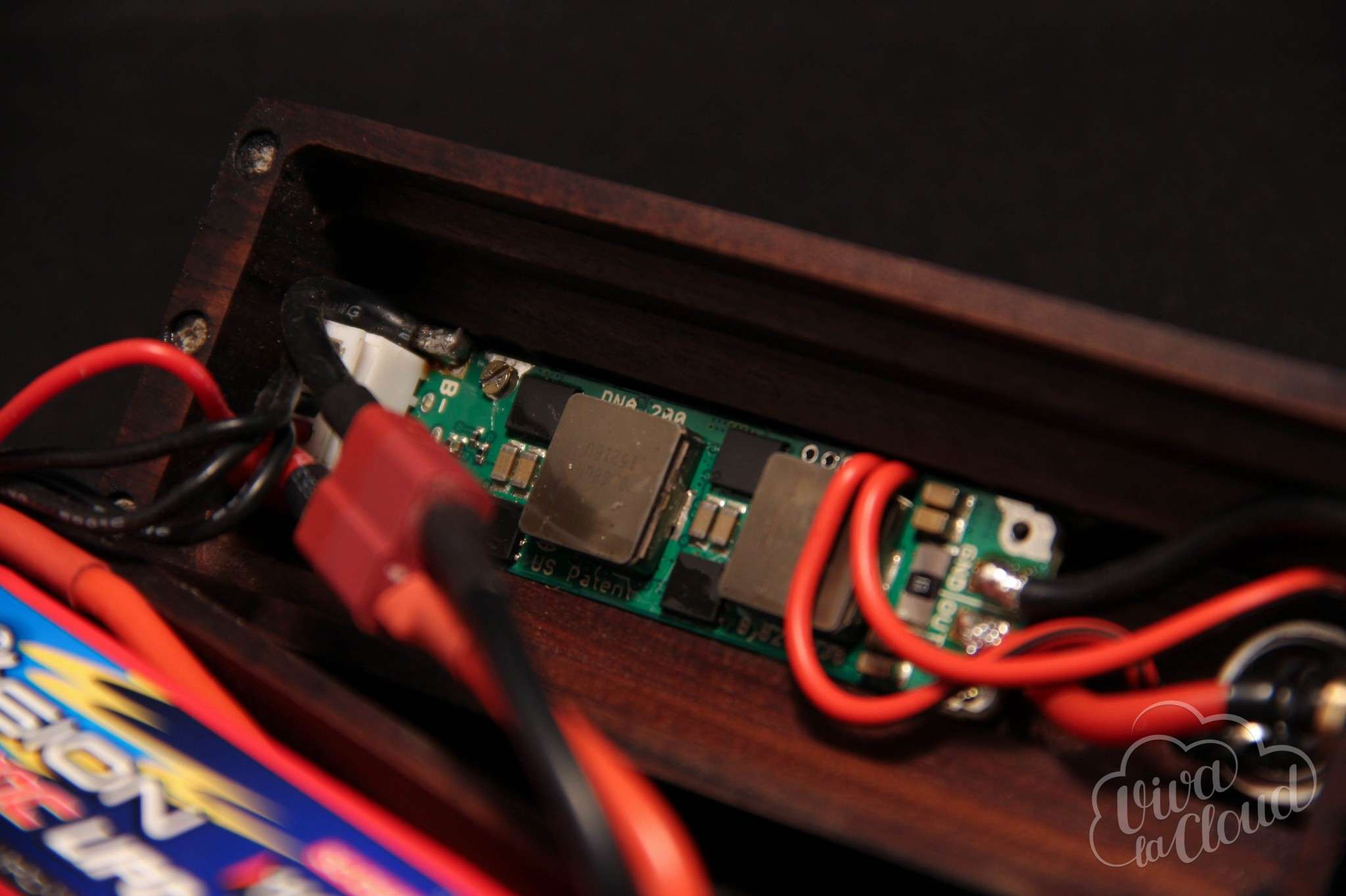 Интересно, что даже при почти что полном разряде аккумулятора, LiPo позволяет еще некоторое время парить девайс на 100 Ваттах. В этом есть как заслуга самой литий-полимерной батареи, так и платы.