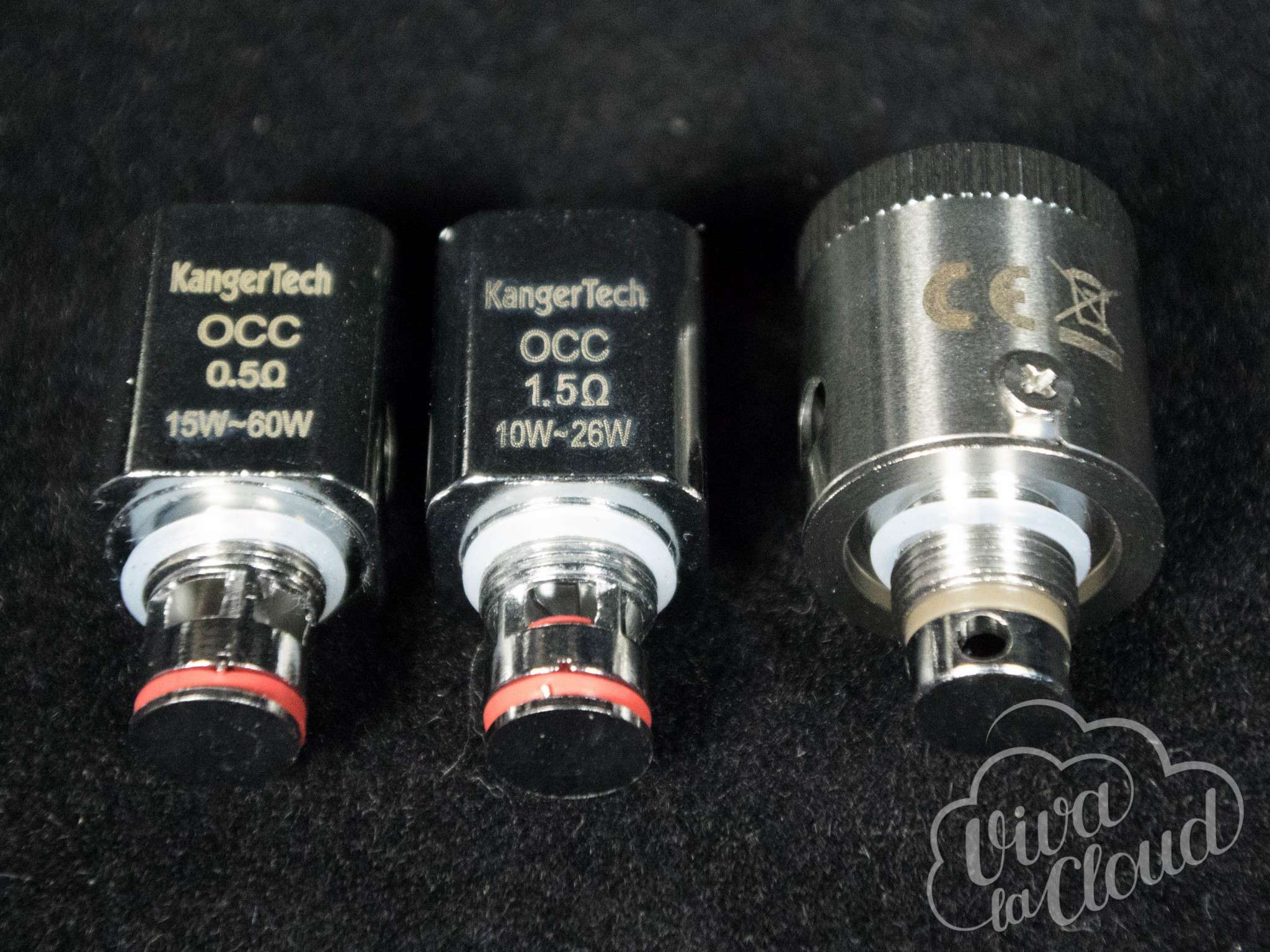 Необслуживаемые испарители тоже стали лучше, как тот, что на 1,5Ω для сигаретной затяжки, так и тот, что на 0,5Ω для затяжки кальянной. Вместо горизонтальных спиралей у нас теперь вертикальные, что дает больше вкуса, а максимальная выдерживаемая мощность повысилась до 25 и 50 Ватт соотвественно. Испарители все так же совместимы с любыми версиями баков Subtank.