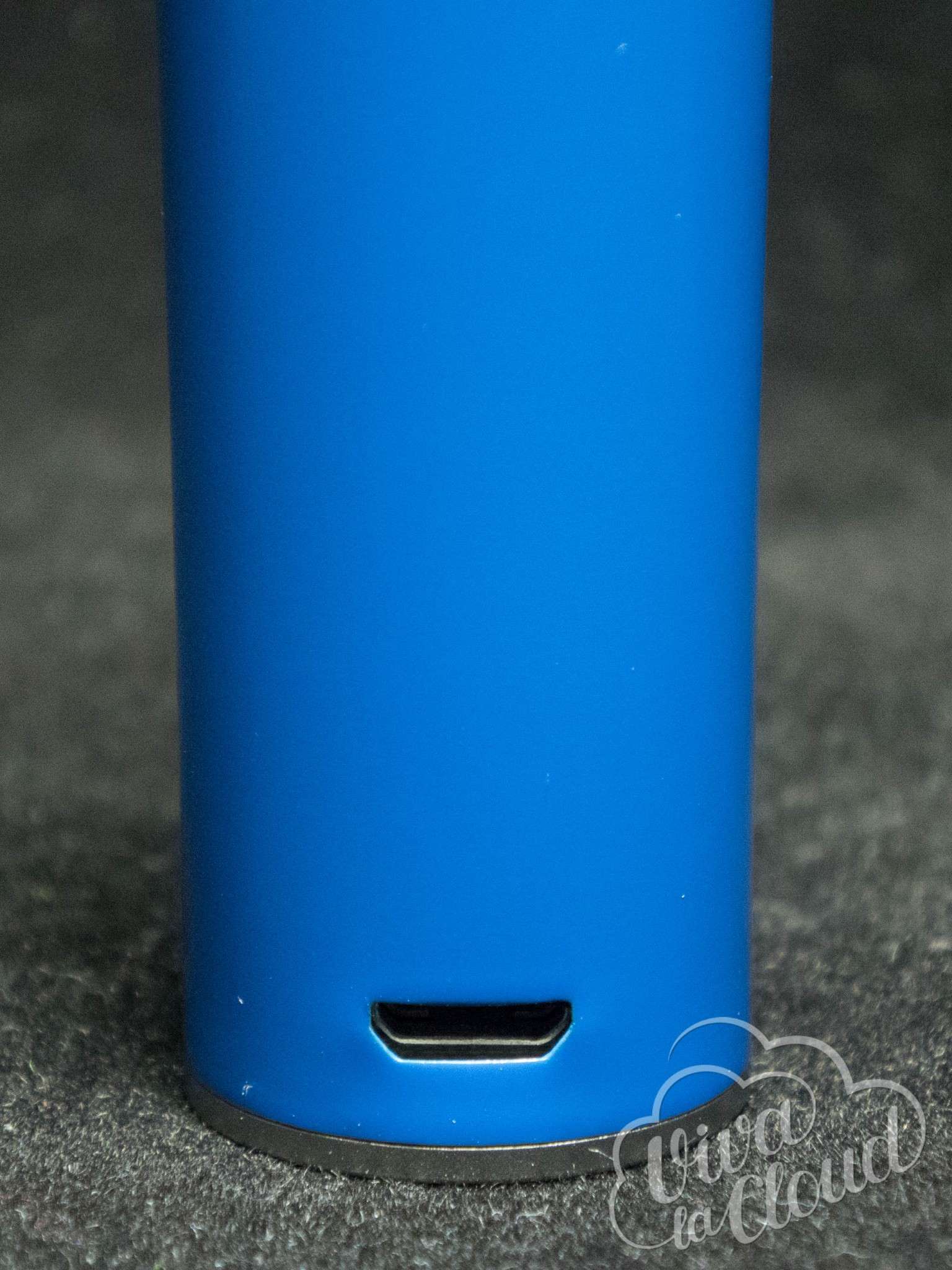 При зарядке кнопка подсвечивается красным. Внизу, на задней стороне находится разъем microUSB для зарядки. От 1А заряжается довольно быстро.