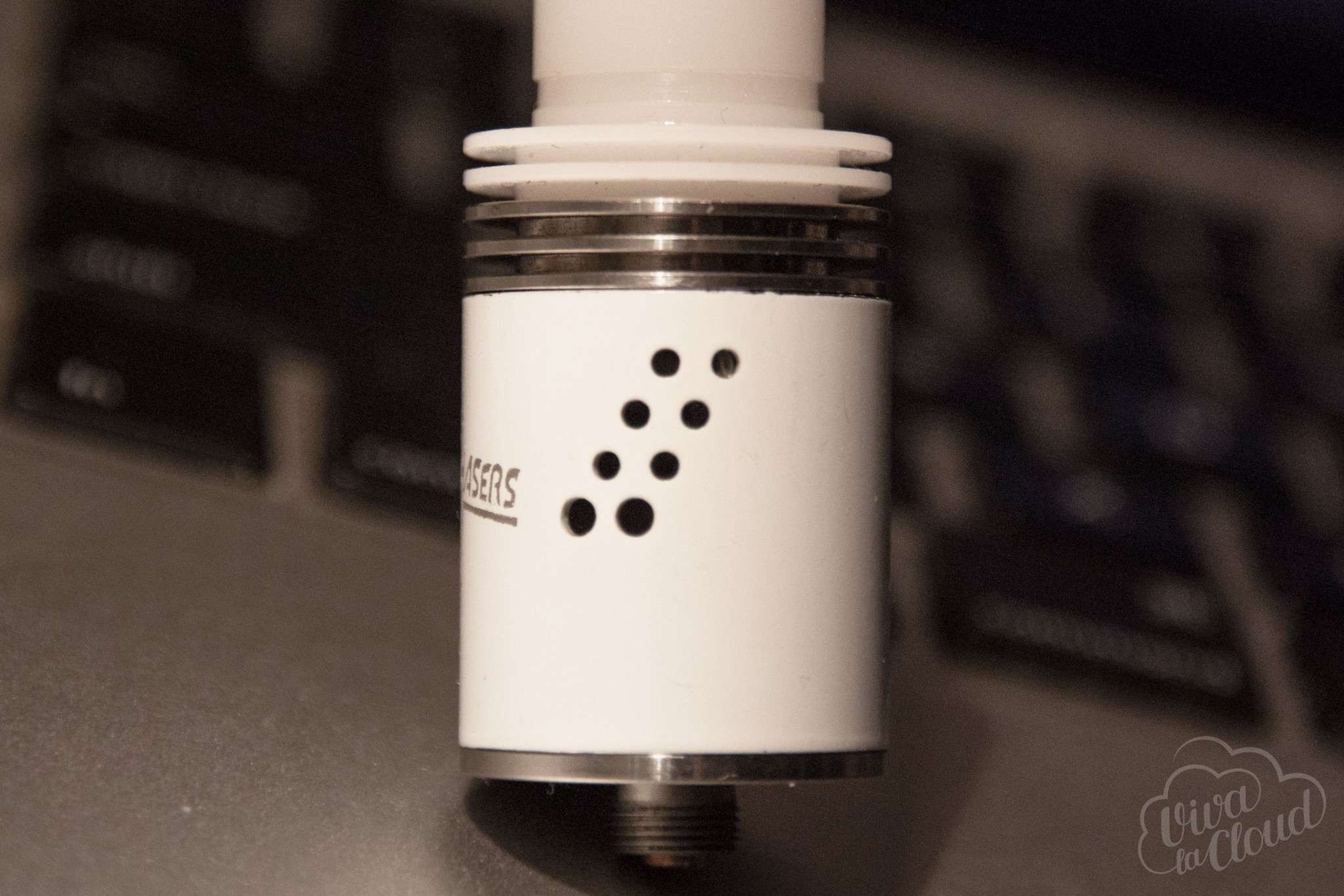 В нашем случае дрипка выполнена в белом цвете. Краска держится гораздо лучше, чем на девайсах от других производителей, но в конечном итоге ожидайте того, что она всё равно начнет слезать — советуем брать атомайзер в стальном исполнении.