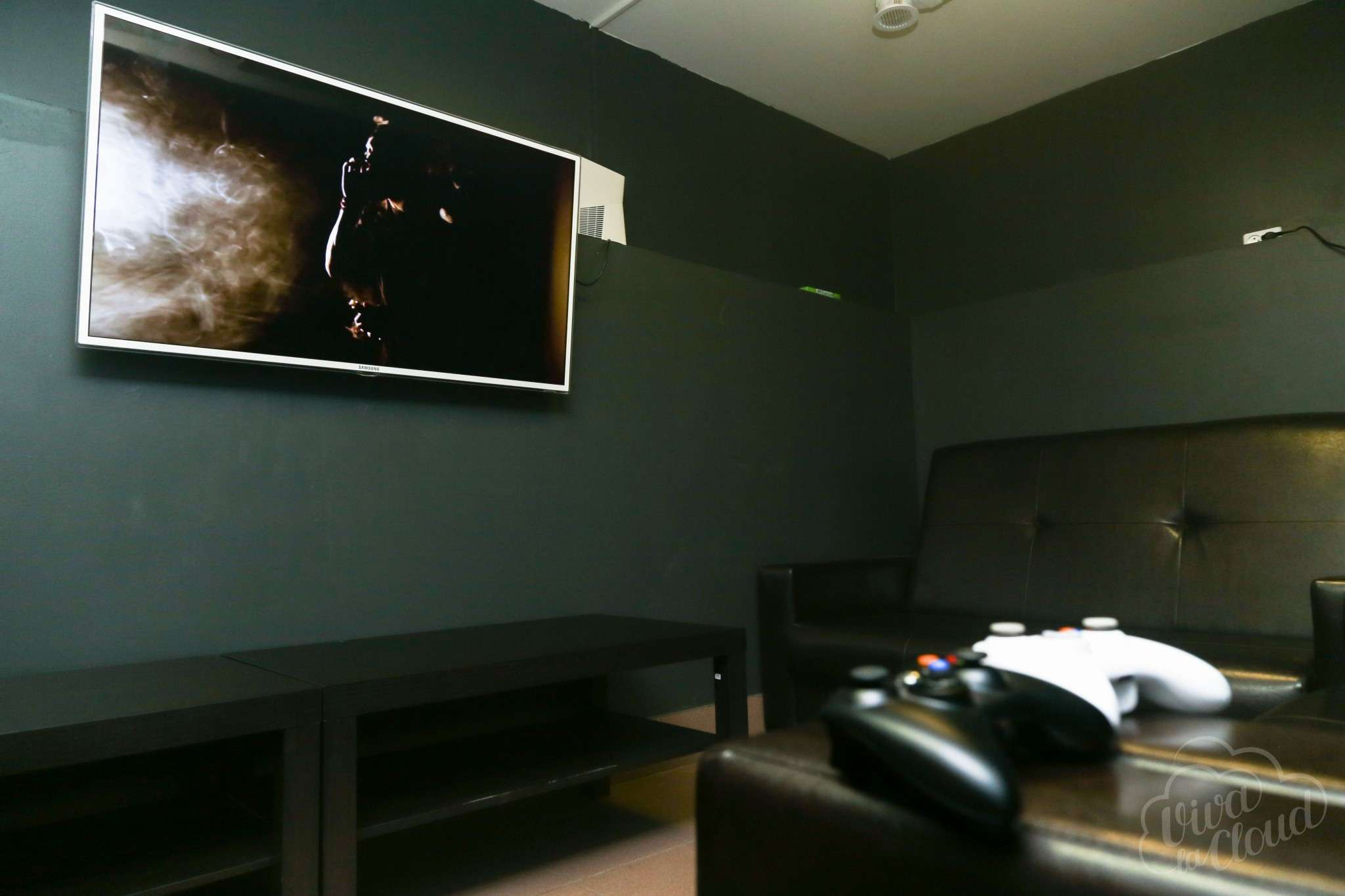 Из еще приятного и уютного: за барной стойкой расположилась комнатка, где висит внушительная плазма и стоит приставка — классика.