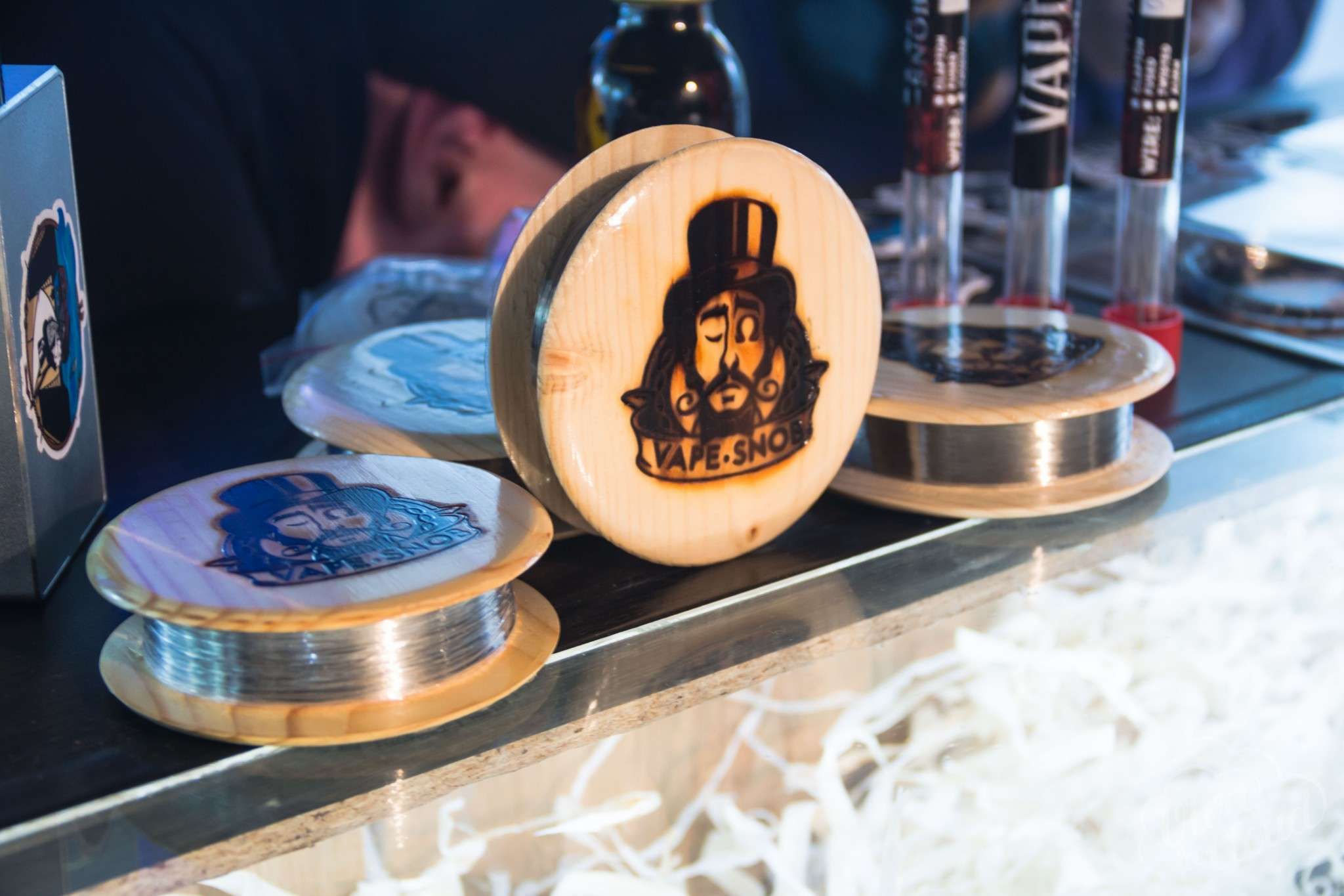 Эксклюзивным дистрибьютором Cuttwood на территории РФ является компания Pitervape, и помимо самой жидкости, на их стенде можно было найти кучу атрибутики (футболки, кепки и так далее). Тестинг жидкостей проводился на боксмодах HexOhm v2 с фирменной гравировкой и бачках Ctulhu.