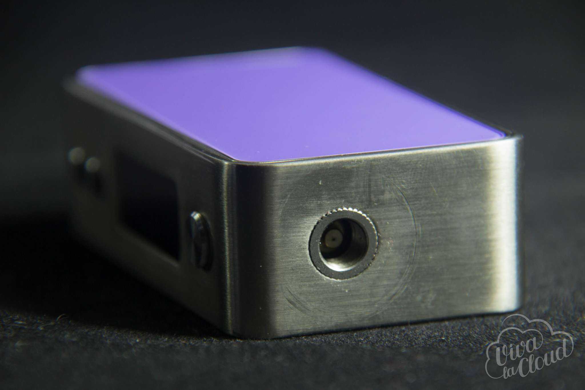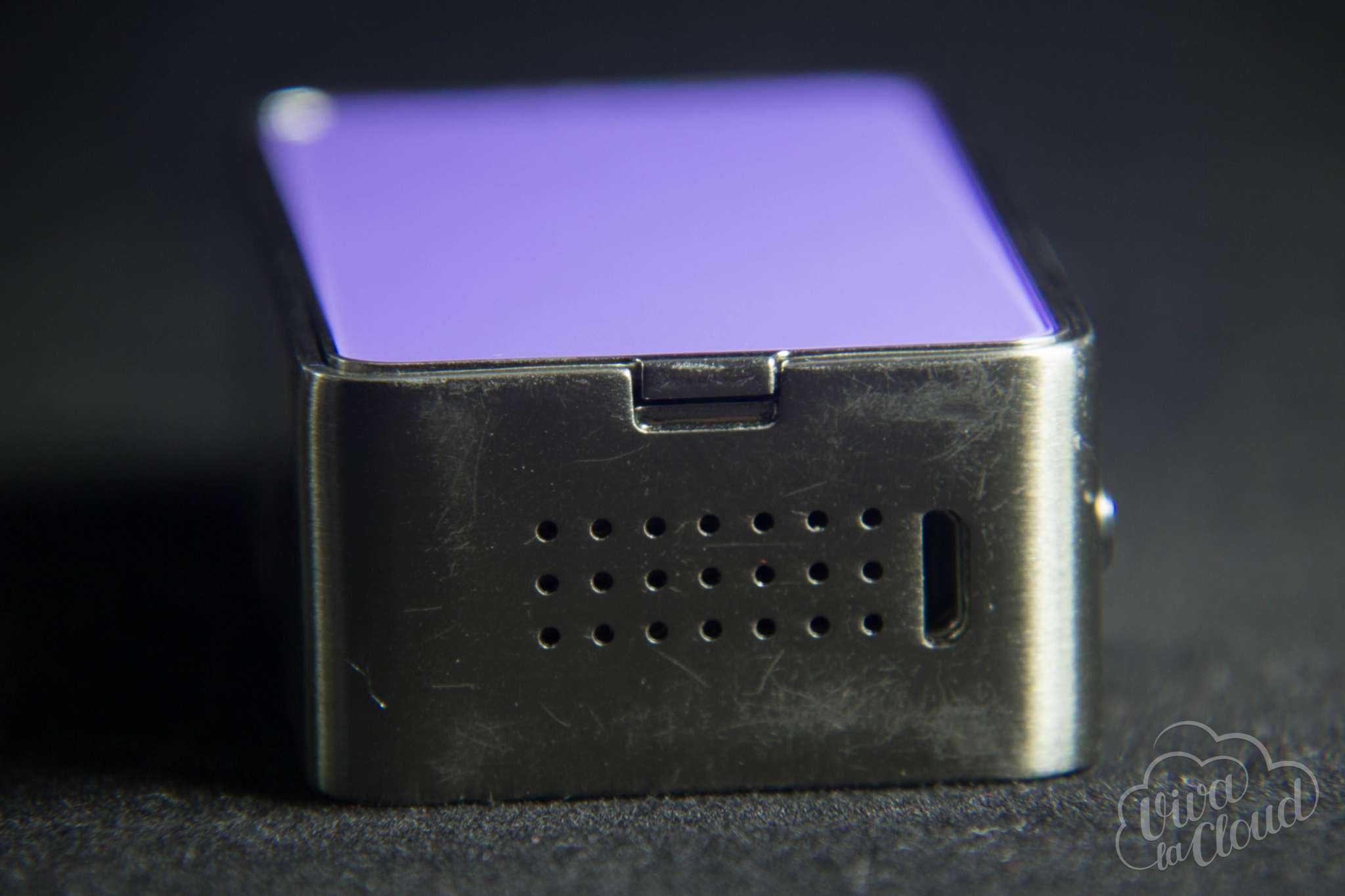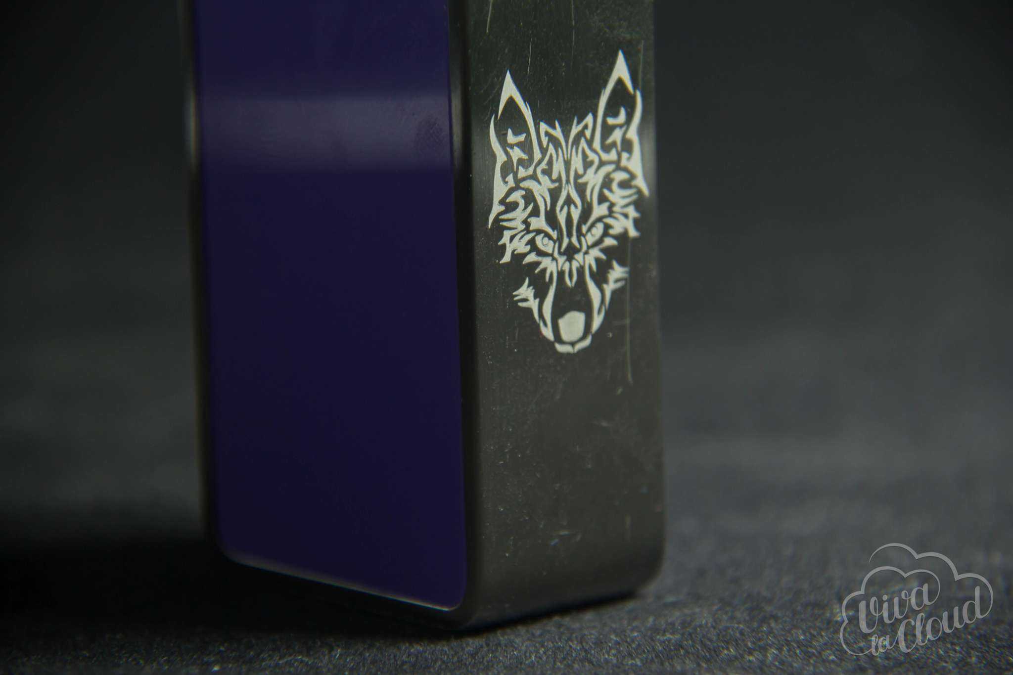 На обратной стороне от кнопок расположилась гравировка волка, которая ничуть не потрепалась за время использования. Коннектор здесь подпружиненный и не имеет вырезов под доисторические баки с нижним обдувом. На нижней грани у нас вентиляционные отверстия, порт microUSB и удобная засечка для снятия крышки батарейного отсека.