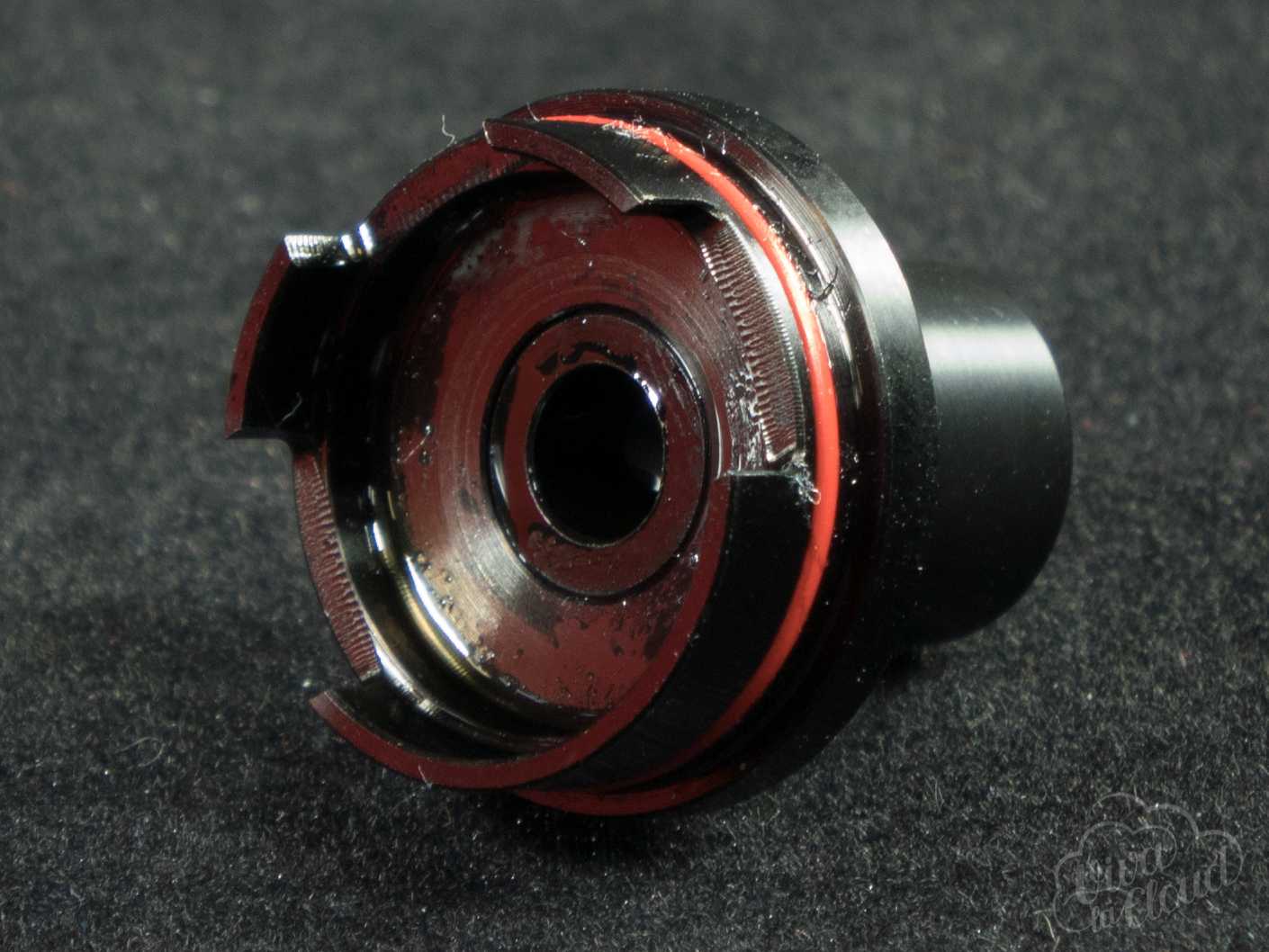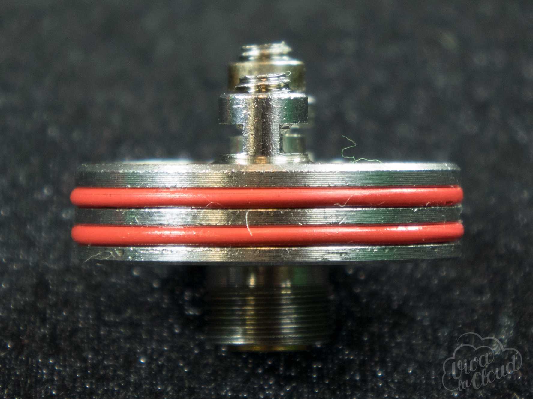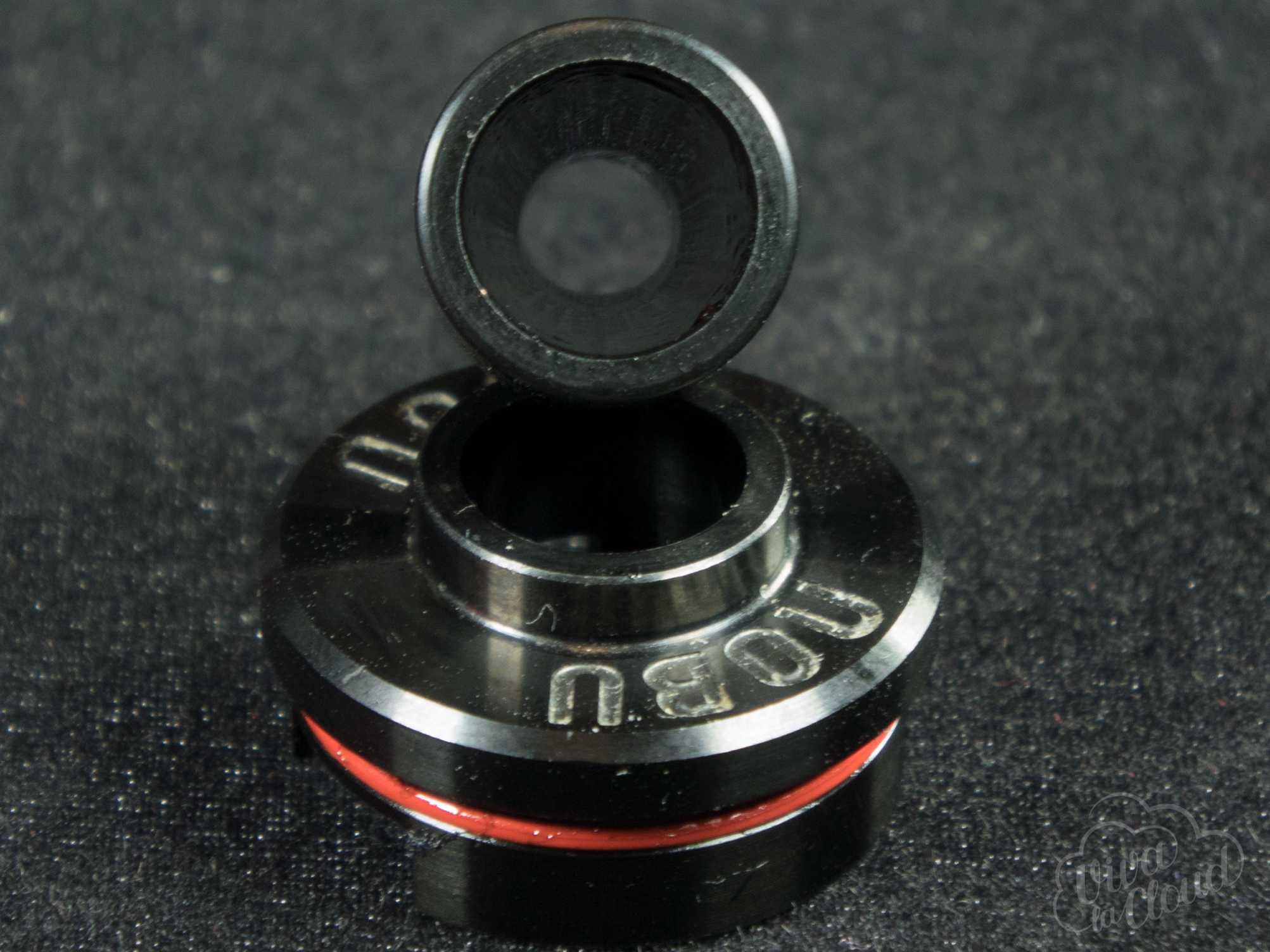 Регулировка обдува позволяет парить как на одной, так и на двух спиралях. Фиксируется также одним о-рингом. Снимать топ-кэп довольно приятно — жесткость о-ринга почти что идеальная. Конусной обработки как таковой нет, присутствует только небольшое скругление к внешнему диаметру.