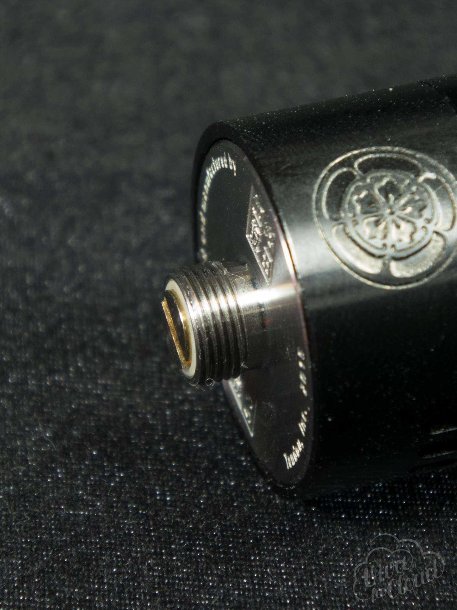 Пин хоть и регулируемый, но все же для гибридных модов его мы бы не рекомендовали. Любители сабома и диких намоток как правильно быстро изнашивают регулируемую стойку, и она либо начинает прокручиваться, либо просто вылетает. Так что регулировать можно, но с особой осторожностью. Пин позолоченный и выполнен из меди.