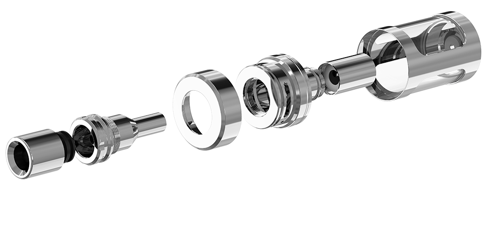 Такая система позволяет открутить верхнюю часть Cubis и заливать жидкость в бак хоть из пятилитровой бутылки. Главное не переливать отметку «максимум». Правда по производительности этот бак немного проигрывает, испарители тянут максимально 40 Ватт, что достаточно мало и не раскрывает полный потенциал даже флагманского девайса Joyetech — VTC Mini.