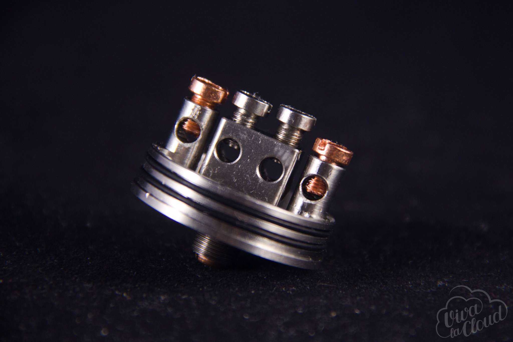 Неприятные моменты, однако, тоже были. Во-первых, это пин коннектора. Он слишком длинный, из-за чего на большинстве устройств остается зазор между площадкой и самим атомайзером. Да и в целом, найти серийный боксмод с 30 мм площадкой под атомайзеры не так-то и просто.