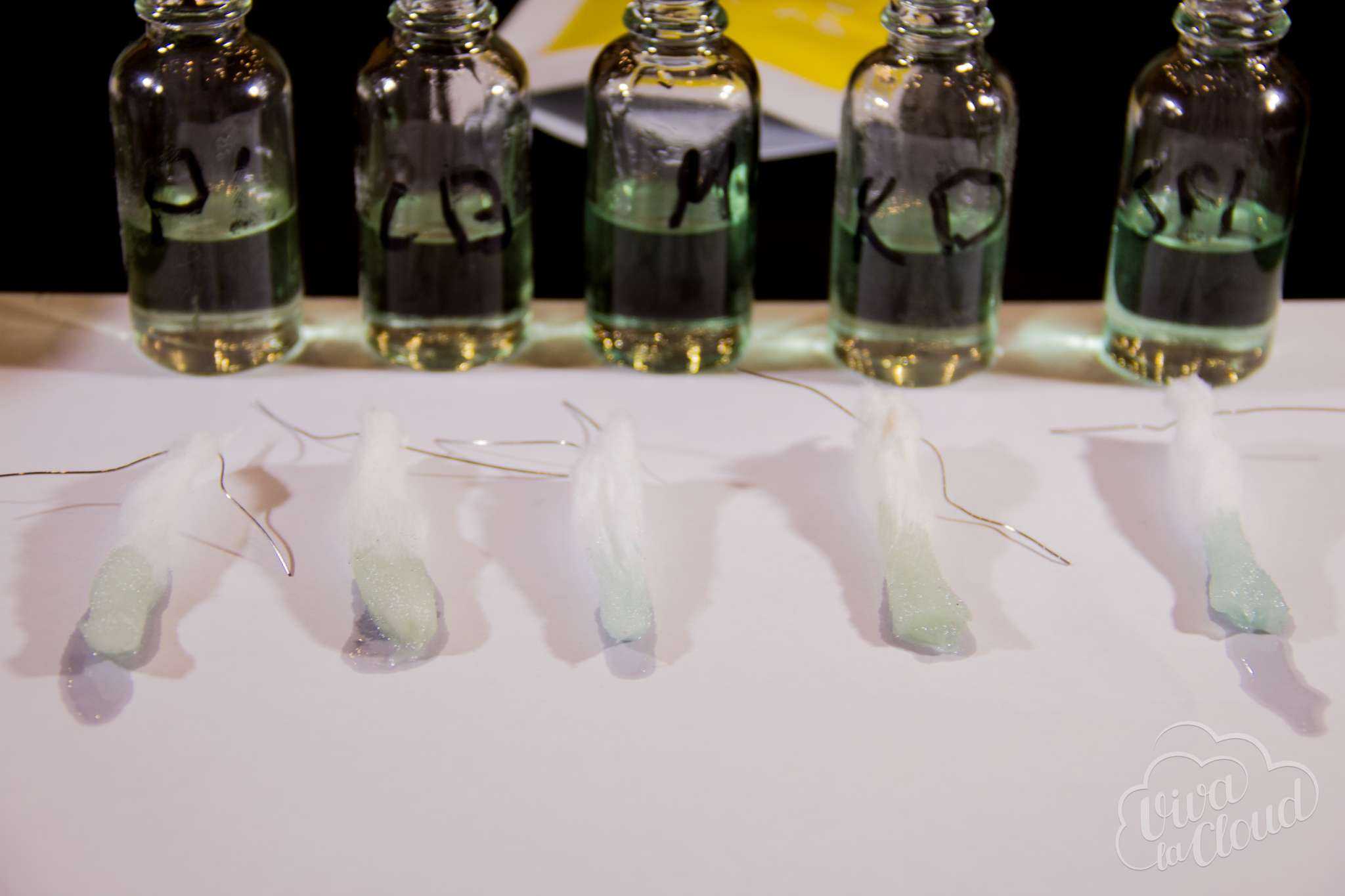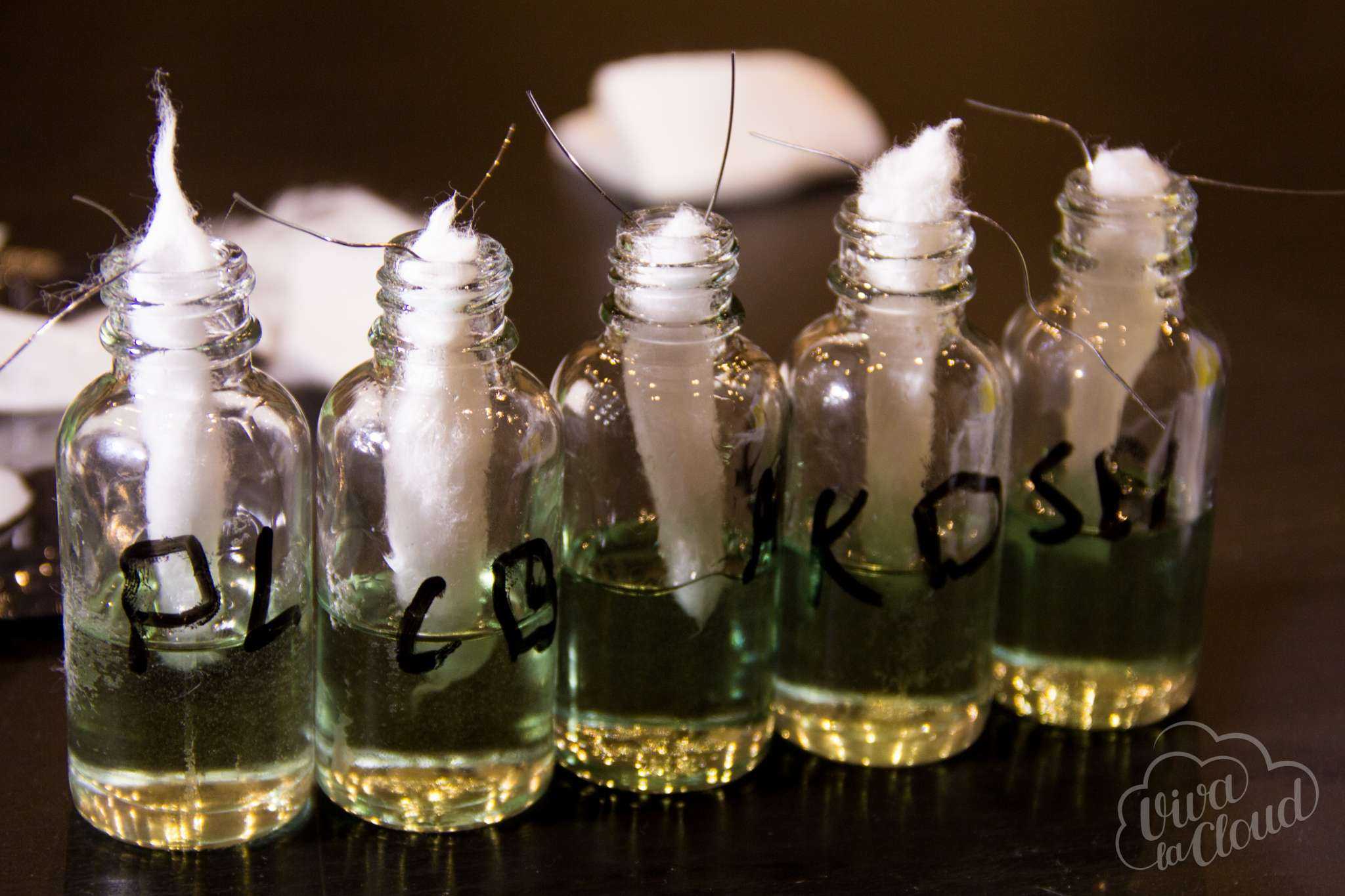 Мы взяли пять брендов ваты: Muji, Koh Gen do, Selena, Cotton Bacon и Puff’s Lab. После этого мы отобрали то количество, которое потребовалось бы нам для одной спирали. Затем мы одновременно погрузили каждый образец в бутыльки с одинаковой жидкостью на 10 минут.