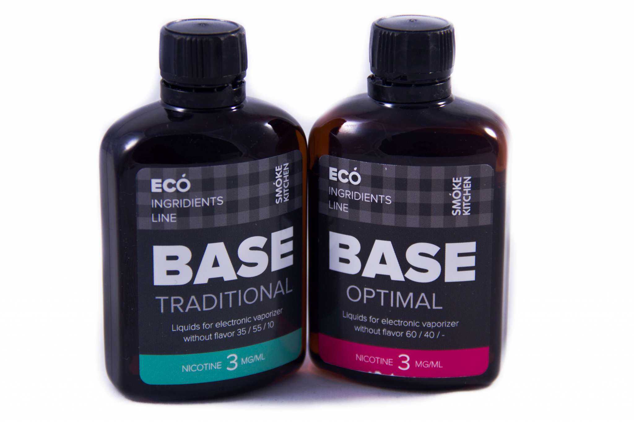 Smoke Kitchen не продают отдельно PG, VG и никотин. Тем не менее у них есть практические все возможные варианты основ (VG/PG/H2O): Traditional (35/55/10), Soft (80/20), Cloud (70/30), Optimal (60/40), Balance (50/50), Hard (30/70). Поставляются основы в бутылках ПЭТ по 100 мл. Крепости аналогичны жидкостям: 0, 1, 3, 6, 12, 18 мг.