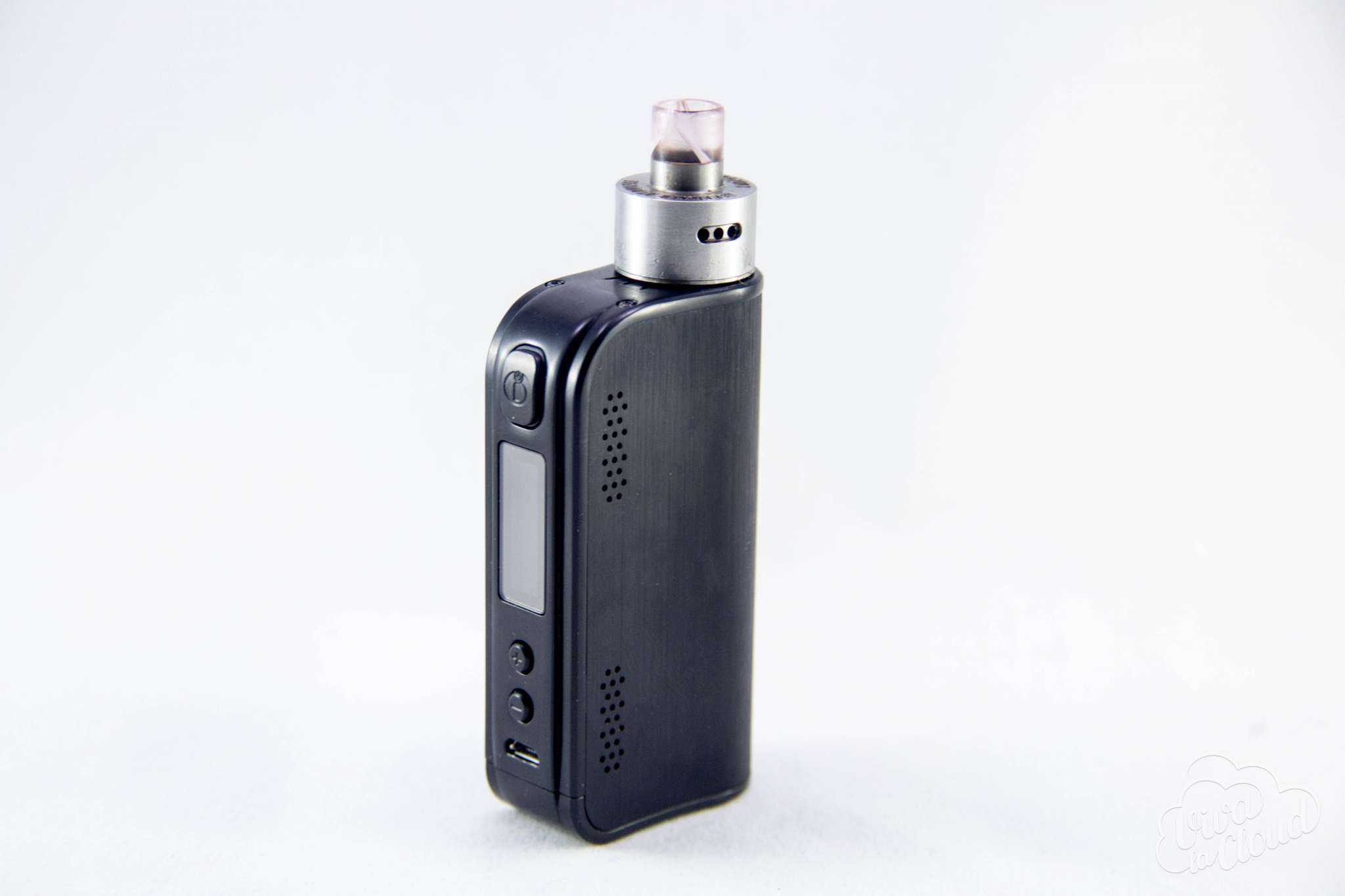 Также боксмод неплохо смотрится со многими атомайзерами. Например: Origen Dripper, Aspire Cleito, Royal Hunter Mini и Derringer: