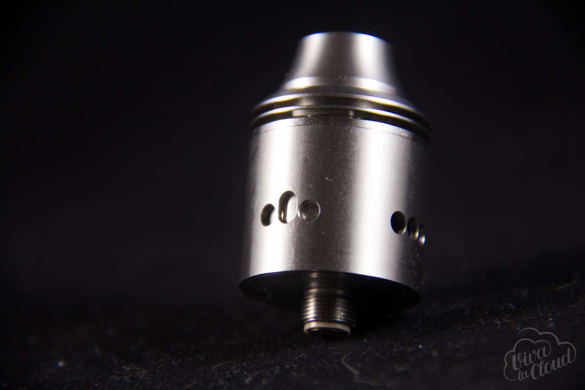 У дрипки тонкие стенки и раздвоенная центральная стойка, что очень удобно. Вдобавок к этому, забор воздуха специально установлен чуть ниже предполагаемой высоты для спиралей. За счет этого эта дрипка дает очень неплохой вкус и отличное количество пара.
