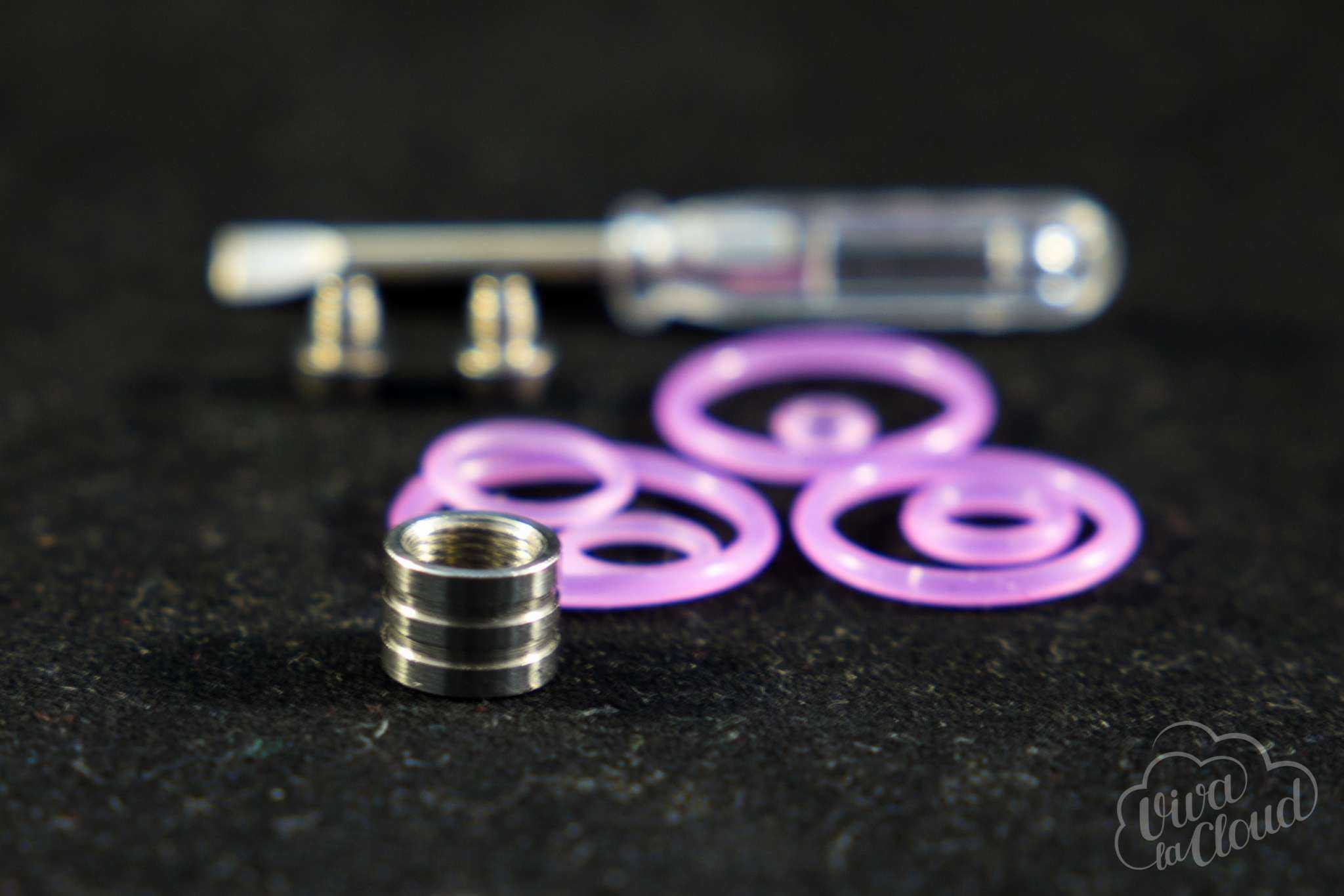 В комплекте идет дополнительная маленькая проставка. Дело в том, что нижняя золотистая часть откручивается для использования с каким-то гибридным модом (вероятно, с их же модом Mana -прим.ред.). Для этого необходимо открутить акриловый изолятор плюсового пина и накрутить специальную втулку.