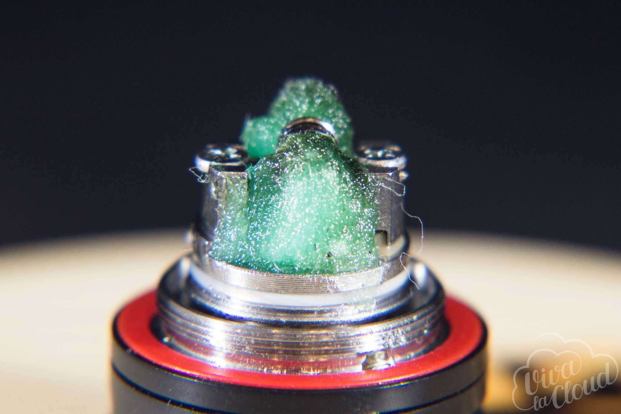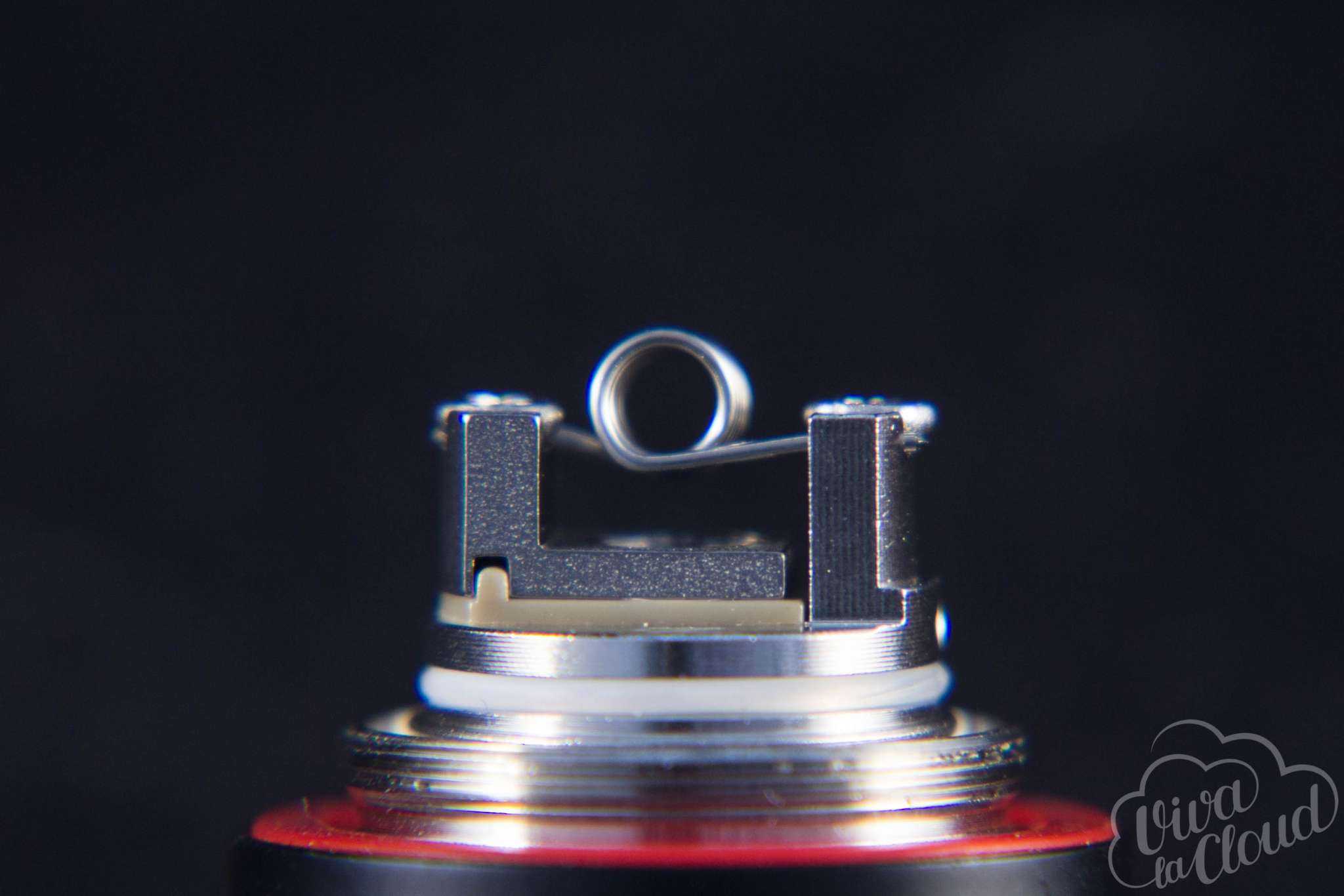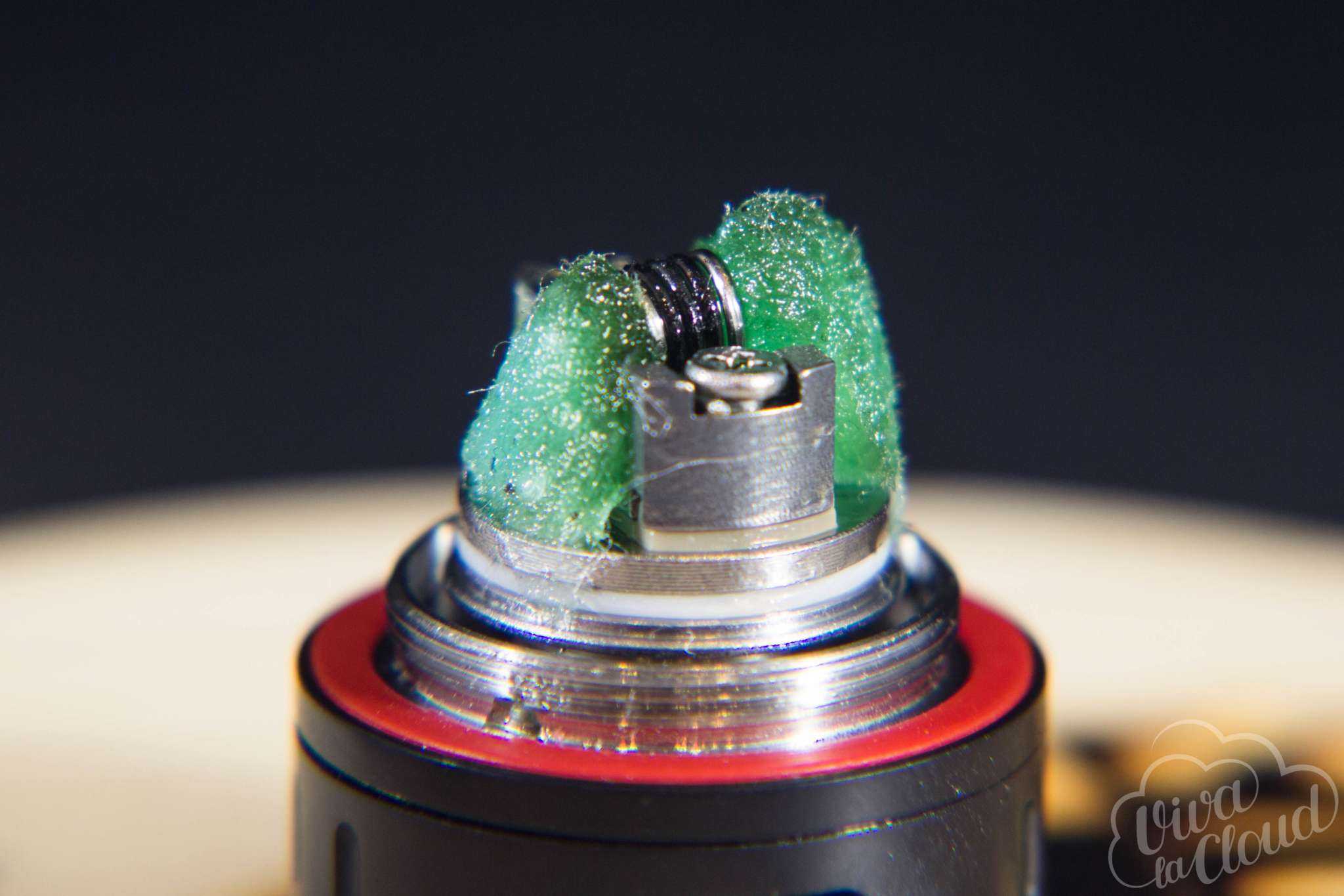 На клэптон-испарителе можно спокойно «подниматься» до 65-70 Ватт без опаски словить драй-хит. Обслуживаемая база же на спирали из комплекта позволяет парить на мощностях до 60 Ватт. И это несмотря на то, что отверстия для подачи жидкости не такие уж и большие.