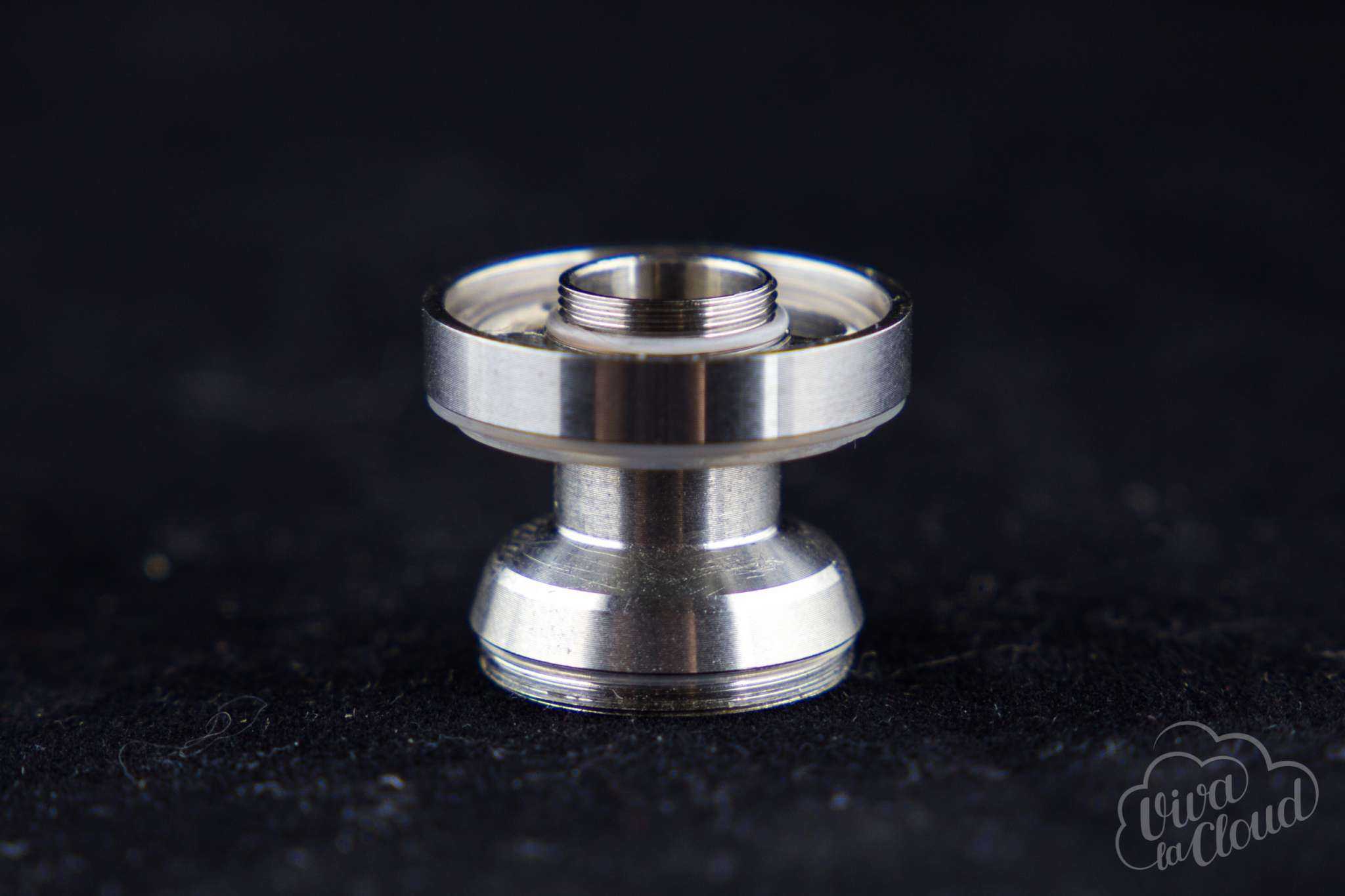 На вершину всего прикручивается крышка со встроенным делриновым дрип-типом, в который при желании можно вставить свой любимый классический мундштук.