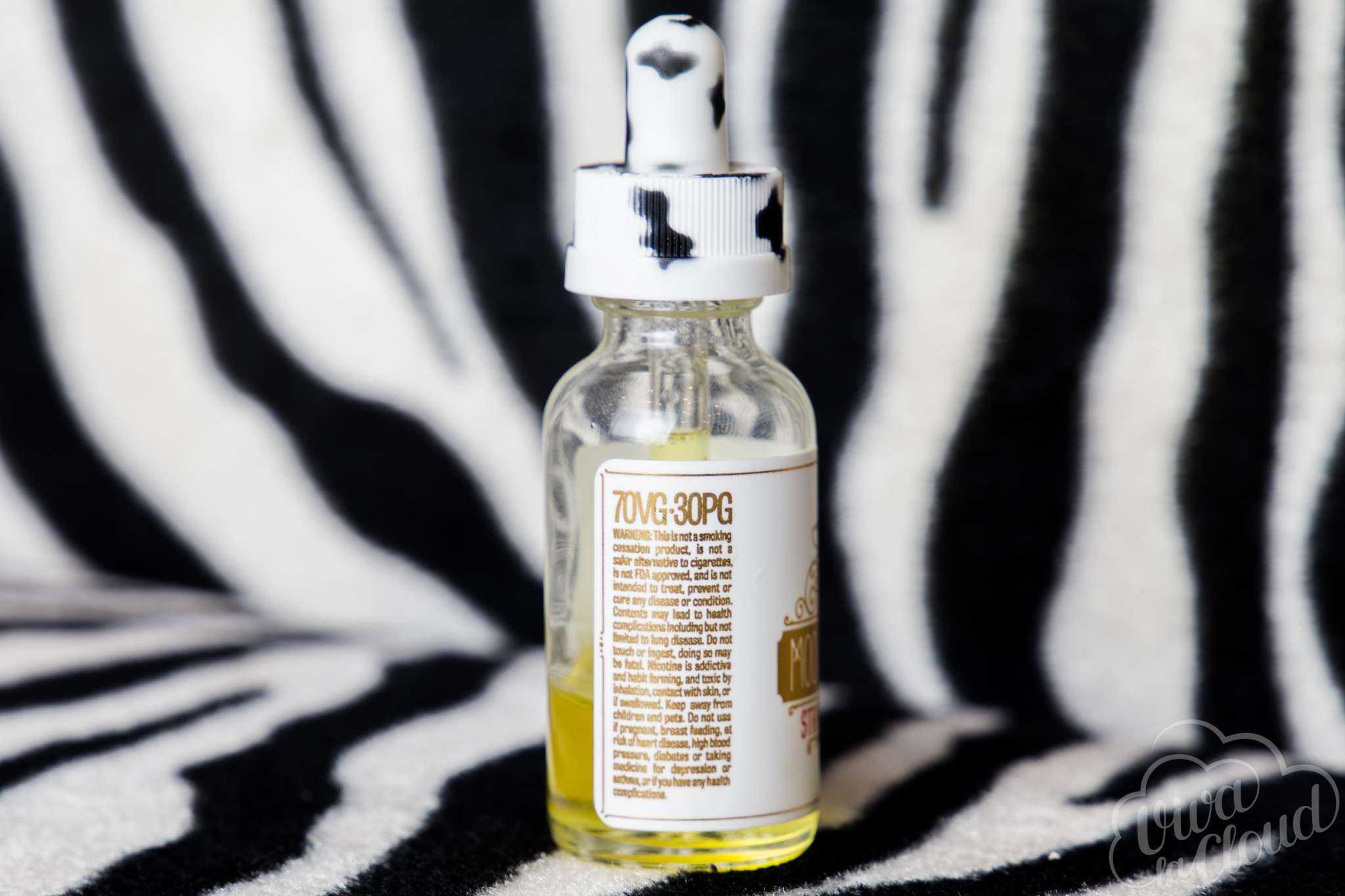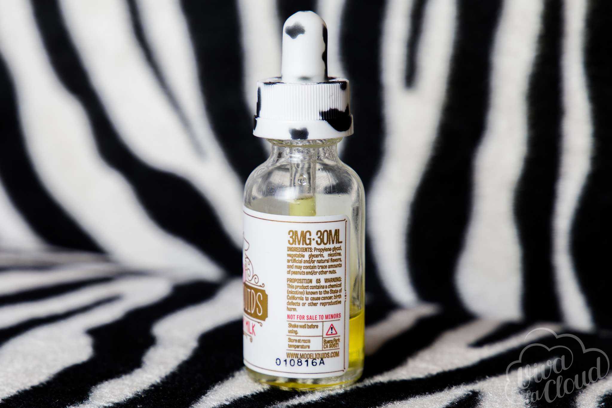 Защита от детей есть, а то сами знаете, что несовершеннолетним возле коровы находиться небезопасно. Поставляется Moo Eliquids в стеклянных флаконах с исчерпывающей информацией о безопасности и составе.