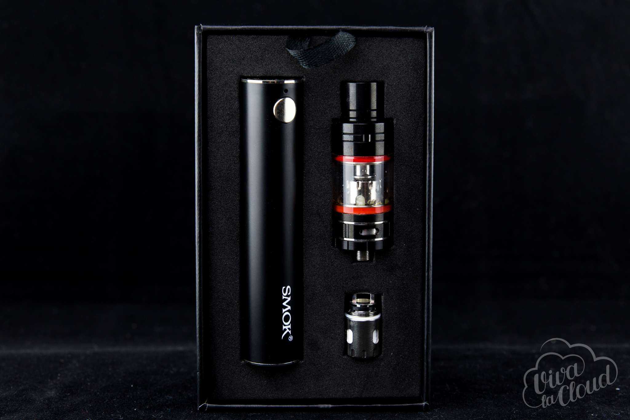 Как ни странно, заряда девайса хватает на большее количество жидкости, чем в Basic Kit. На одном аккумуляторе можно выпарить почти целых 9 мл жидкости. Вот тут-то и назревает вопрос, не схитрили ли SMOK? Или просто ошиблись с номинальной емкостью аккумулятора?