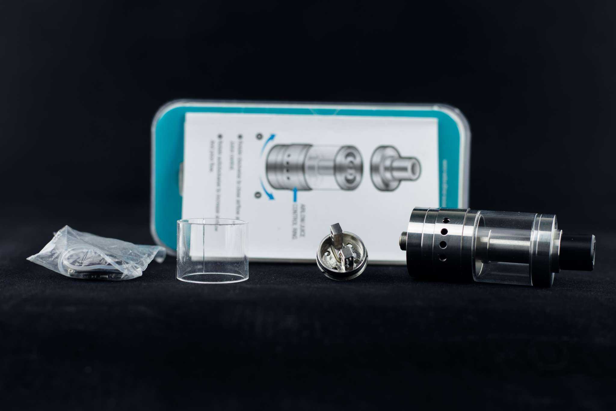 Резервуар для жидкости сделан из стекла, что здорово, а на случай неаккуратного обращения в комплектее имеется запасное. Некоторые вопросы вызывает конструкция основания резервуара, в определенных положениях частично перекрывающая отверстия подачи — собирать бак нужно внимательно. Вместимость отличная: всего в Boreas влезет 8 мл жидкости.