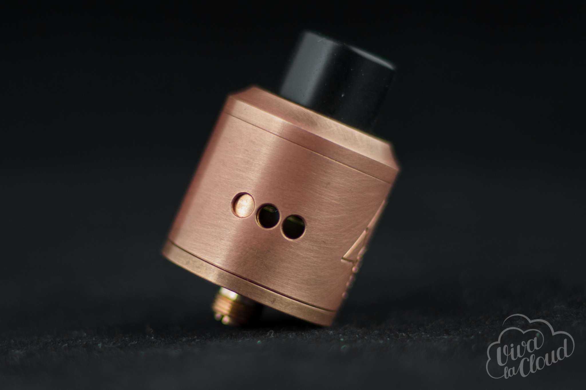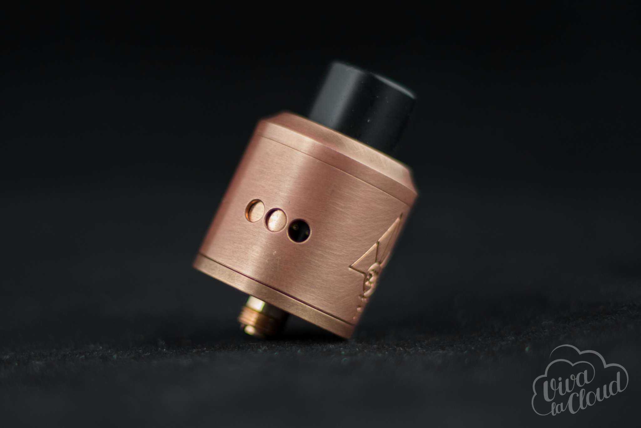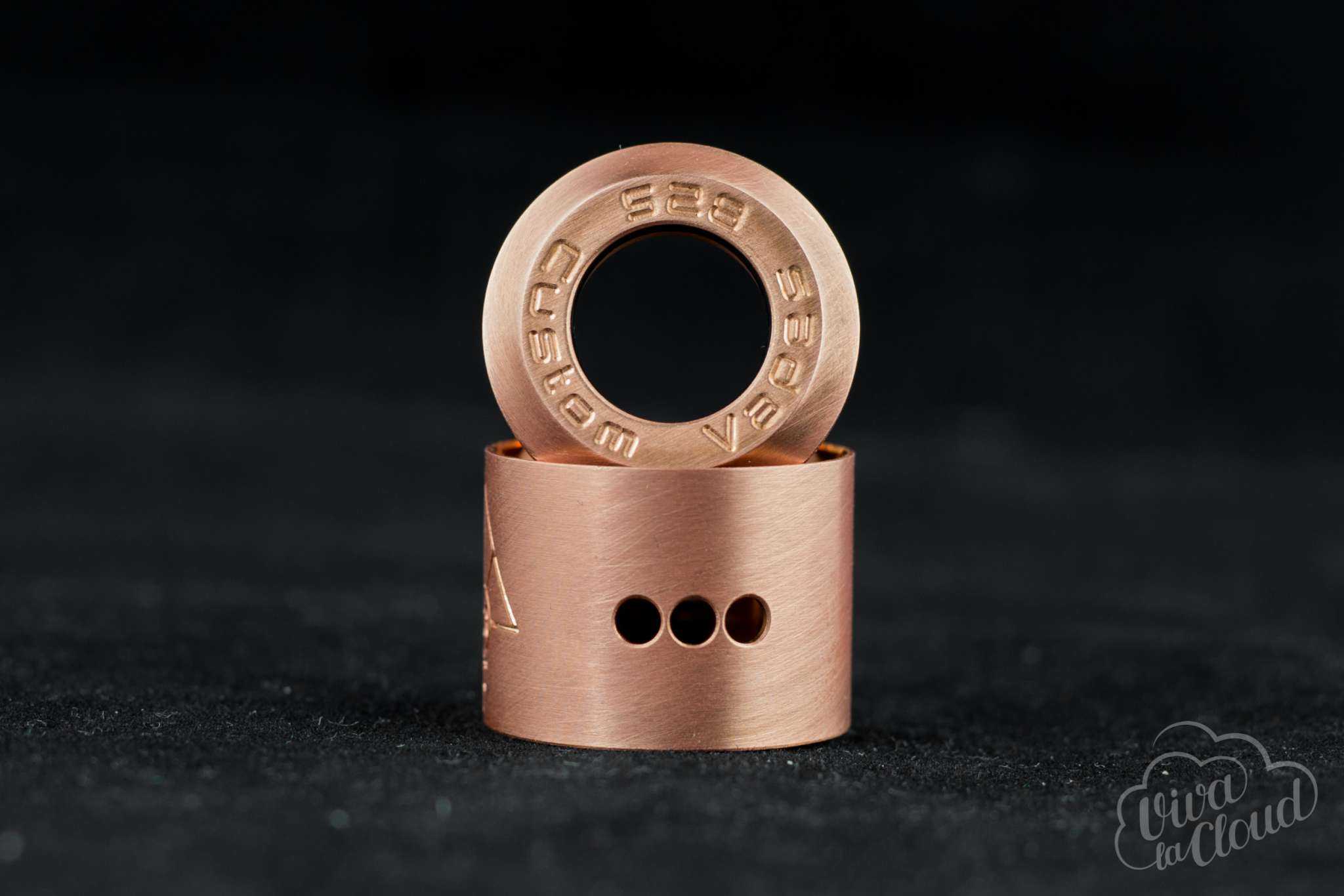 528 Custom Vapes выпускают Goon RDA в четырех модификациях: черной, латунной, медной и из нержавеющей стали. К нам атомайзер попал в медном исполнении.