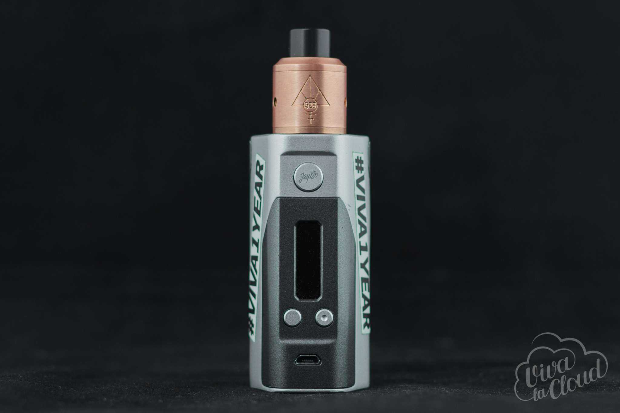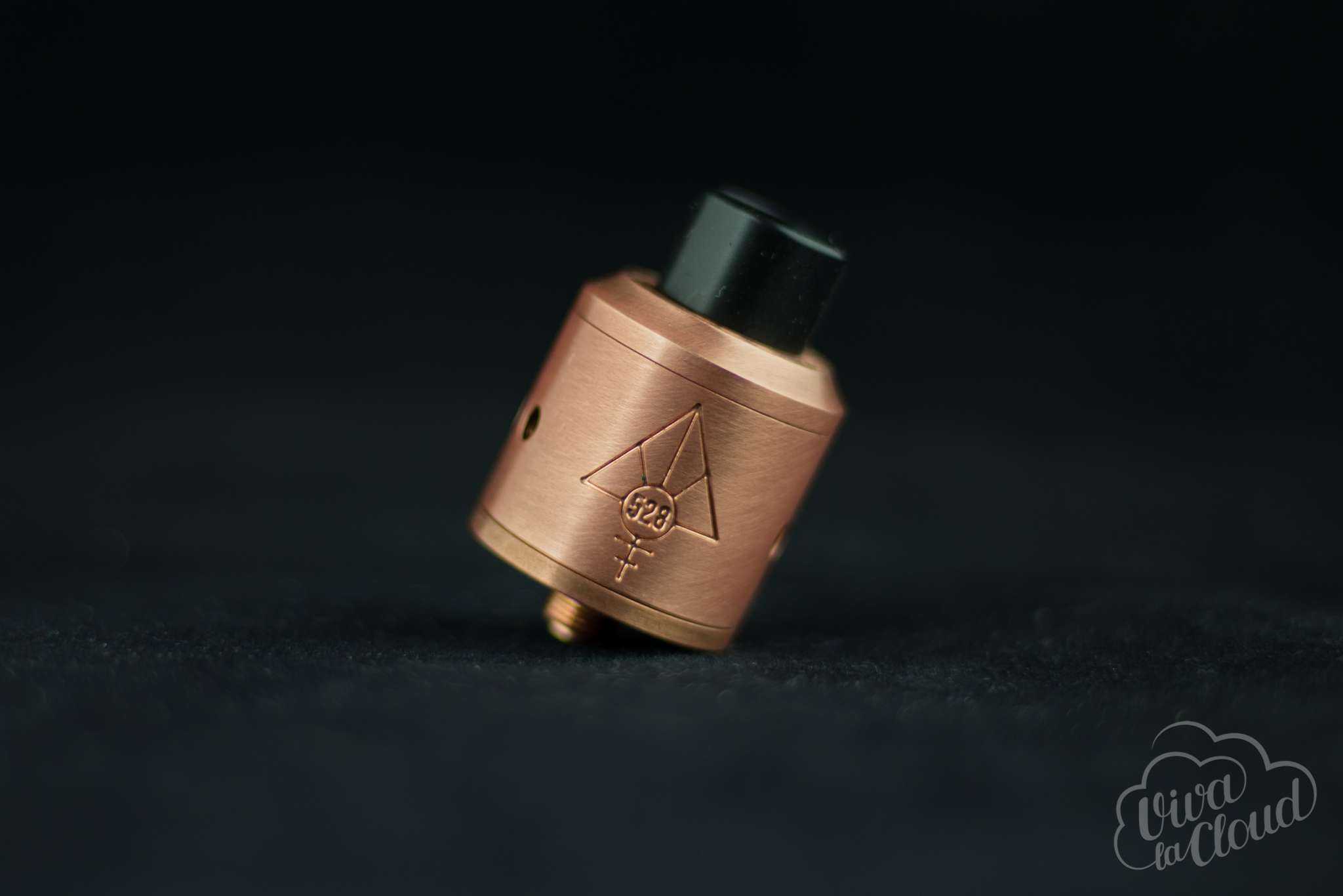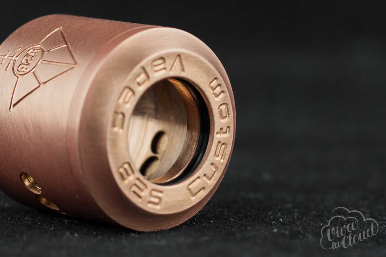 Выглядит RDA просто и стильно. Никаких лишних изгибов или информации. На корпусе выполнена глубокая гравировка с логотипом blueeyedgoon83, а на верхней стороне — 528 Сustom Vapes.