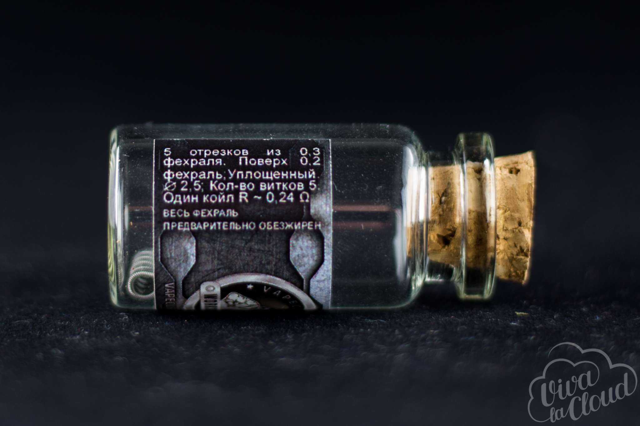 Поставляются они в стеклянных баночках с пробковой затычкой. На этикетке указаны: сайт, название койла, внешний вид и характеристики намотки.
