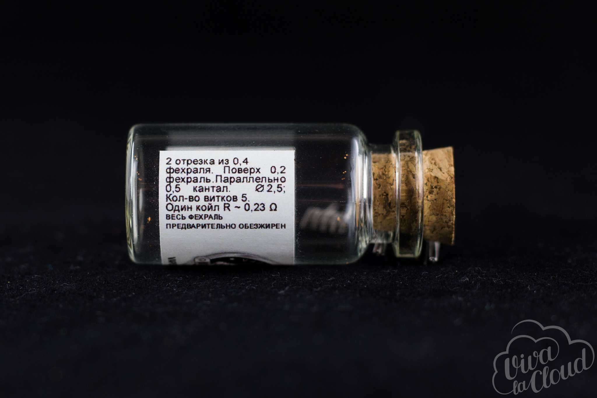 VapeCustom использовали 4 отрезка 0,5 кантала. В одном койле сопротивление должно равняться 0,24Ω, а в двух — 0,12Ω. У нас при установке получилось 0,14Ω, что опять-таки довольно близко.
