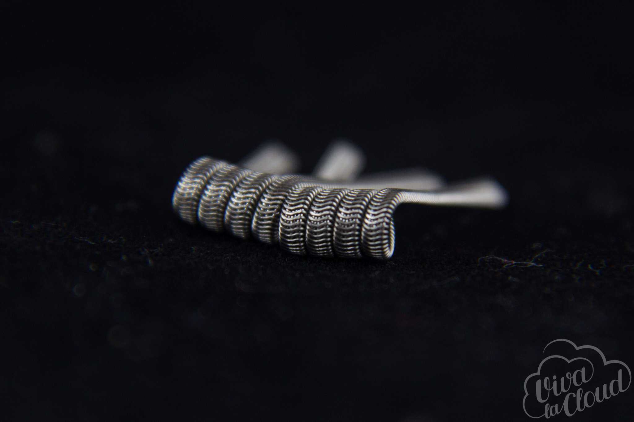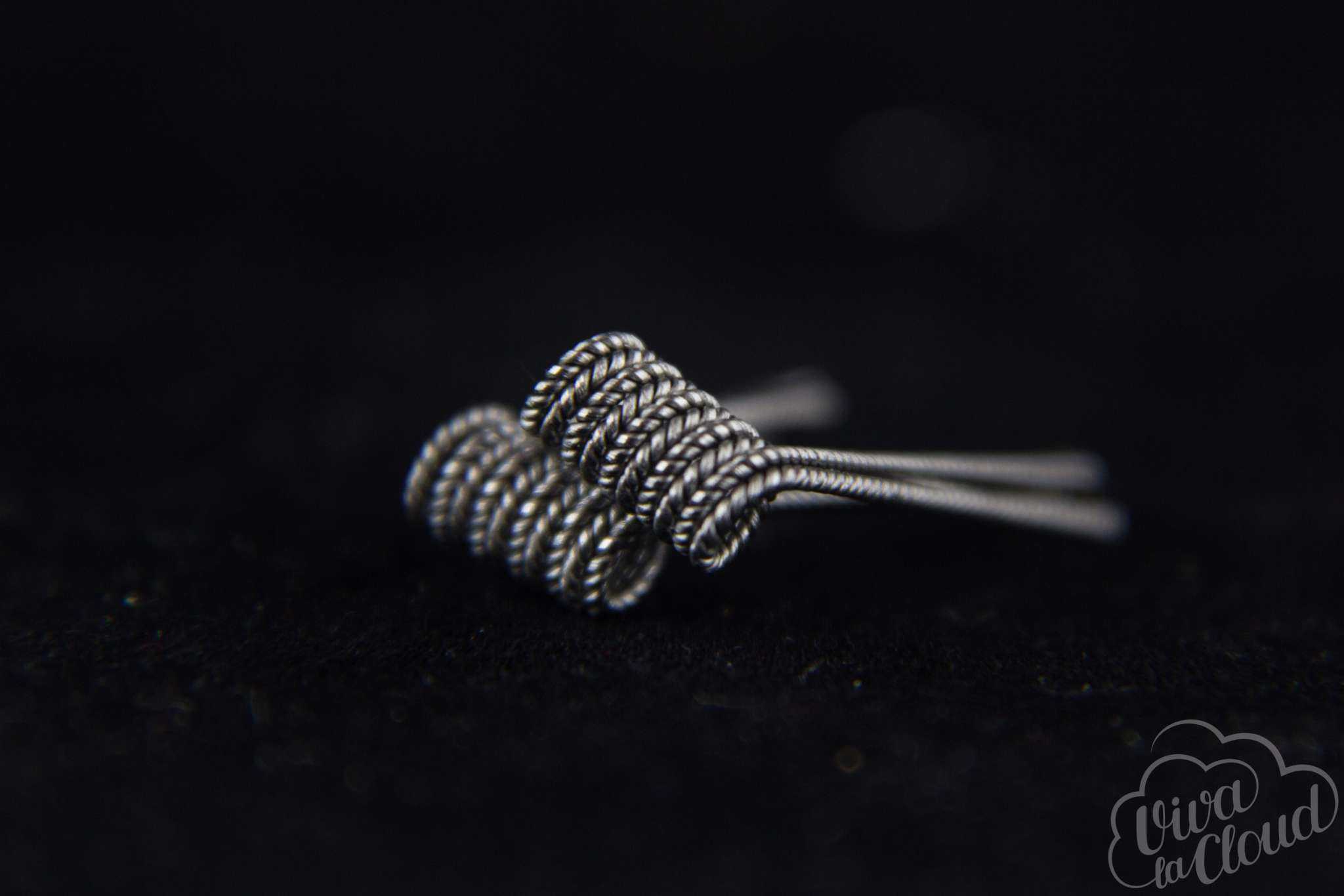 Пожалуй, самый распространенный вид комплексной спирали. Делается так: берем два куска обычной проволоки (диаметром 0.4-0.6 мм) и плотно оборачиваем их, словно шаурму, тонкой проволокой (диаметром 0.25 мм и ниже). Fused Clapton предпочитают многие из-за оптимального сочетания количества вкуса и пара.