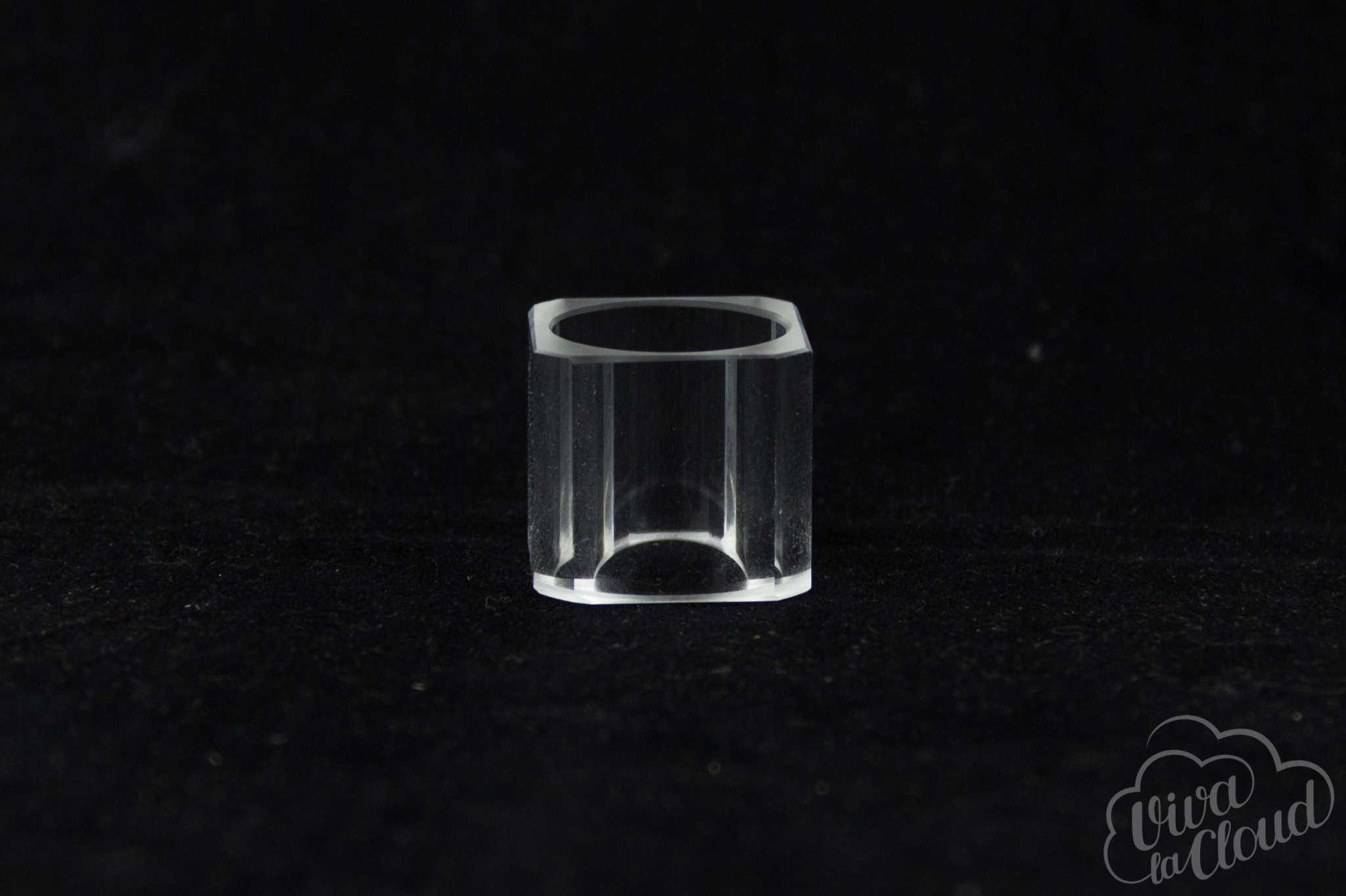Квадратная дрипка Wotofo Cubed не получила уж очень большого распространения. Оно и понятно: такая форма предусмотрена для боксмодов с резкими углами. В других же случаях они смотрятся, мягко говоря, нелепо. Wotofo Ice Cubed — продолжение идеи, но уже с прозрачным корпусом, другим обдувом и базой.