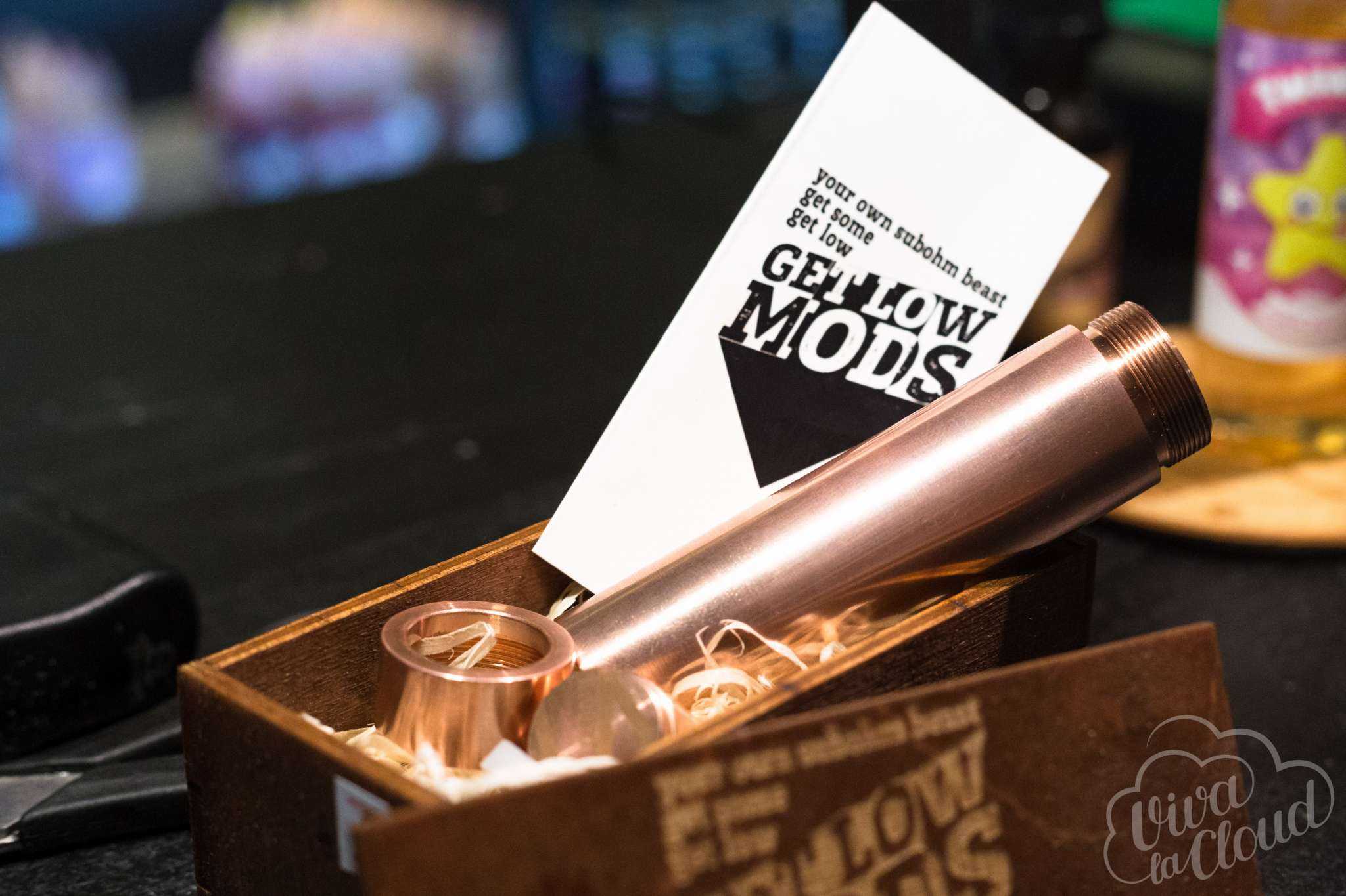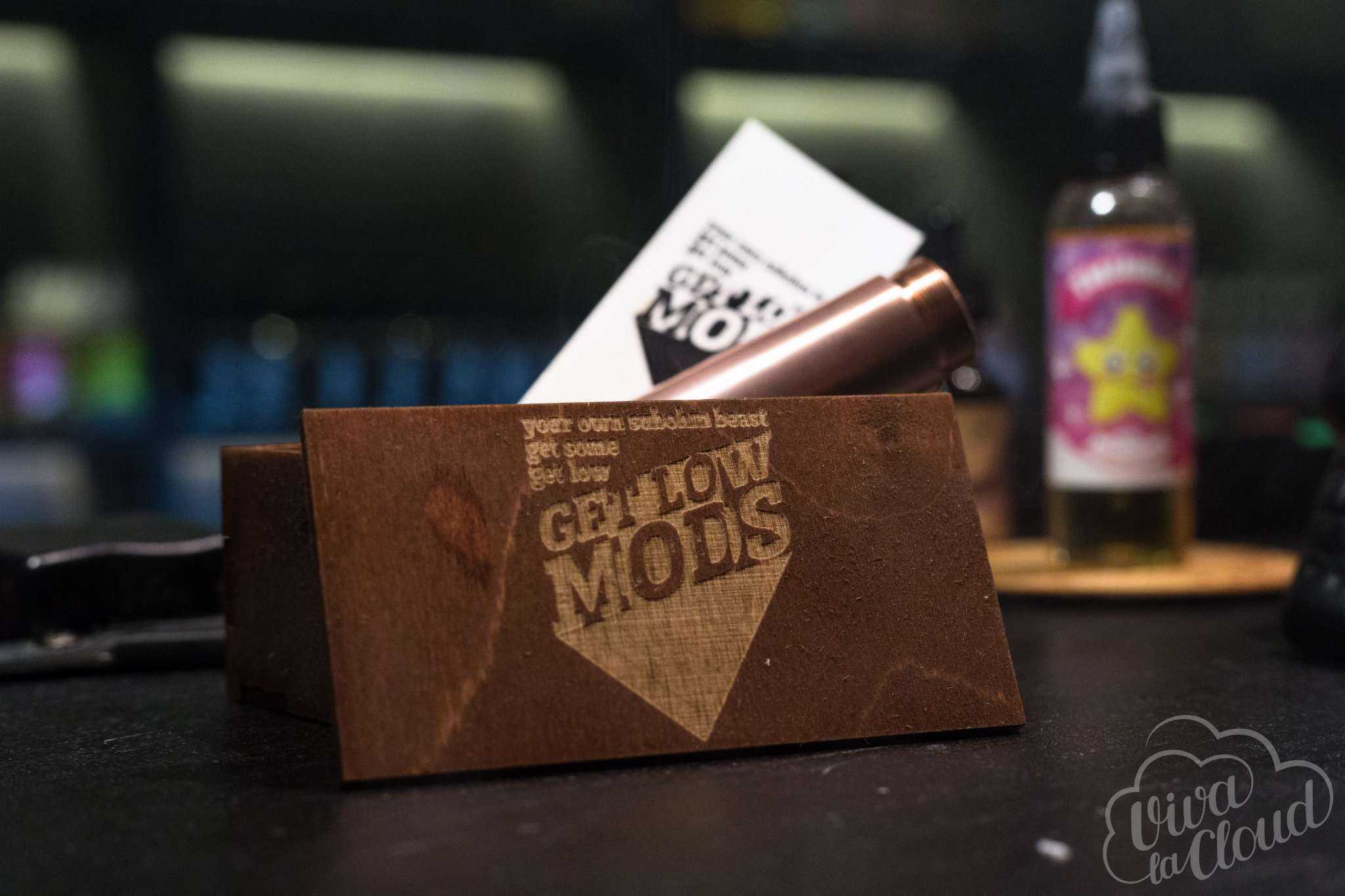 Давайте начнем с железа. Первое, о чем хочется сказать: Cloud Cartel сейчас является эксклюзивным дистрибьютором механических модов Get Low. Мы его увидели впервые, так что устроили ему целый фотосет.