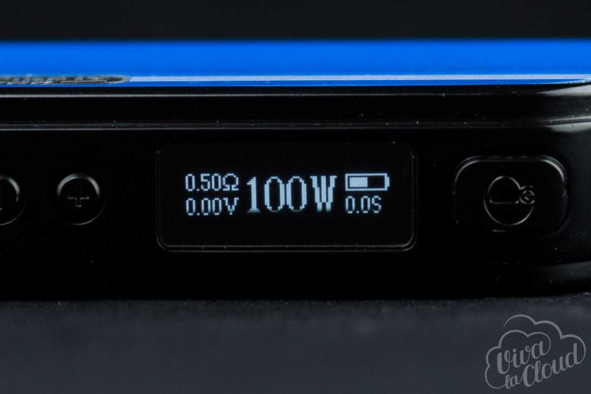 - Минимальные поддерживаемые сопротивления: 0.1 Ом (кантал), 0.2 Ом (сталь), 0.01 Ом (никель и титан)