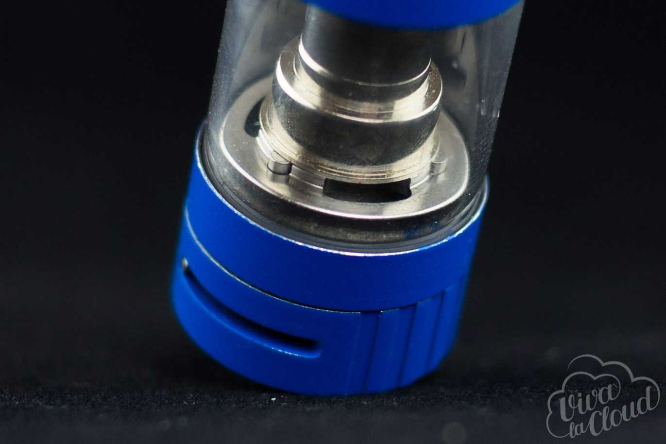 А вторая фишка заключается в подпружиненной шахте. Таким образом, когда верхняя крышка снята, порты для доступа жидкости к испарителю закрыты, а когда закручена — открыты.