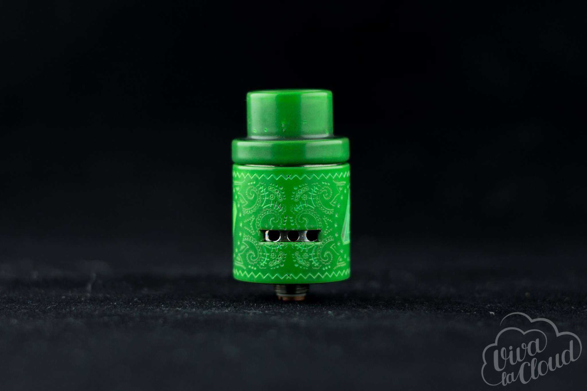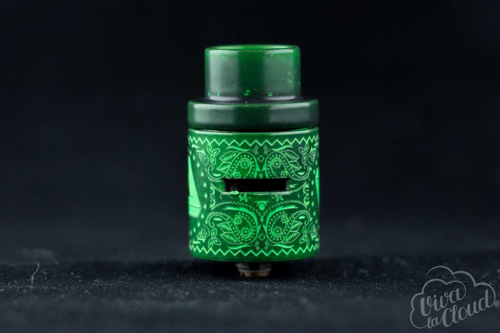 Фишка атомайзера заключается в том, что в зависимости от температуры он меняет цвет. Если вы не парите устройство, и корпус дрипки остыл, то цвет темно-зеленый. Во время парения Color Changing RDA становится светло-зеленым.