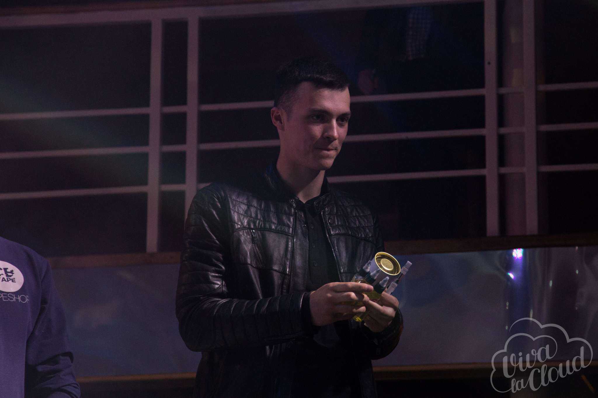 Несмотря на довольно сильных конкурентов, первое место занял Александр Драгунов из Москвы — тот самый чувак, который выиграл контест на декабрьском Vapexpo и вроде как должен в августе отправиться на финал Мировой Лиги Клаудчейсинга в Лондоне.