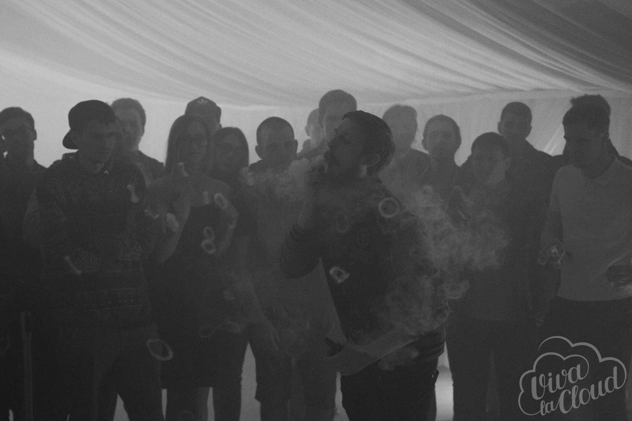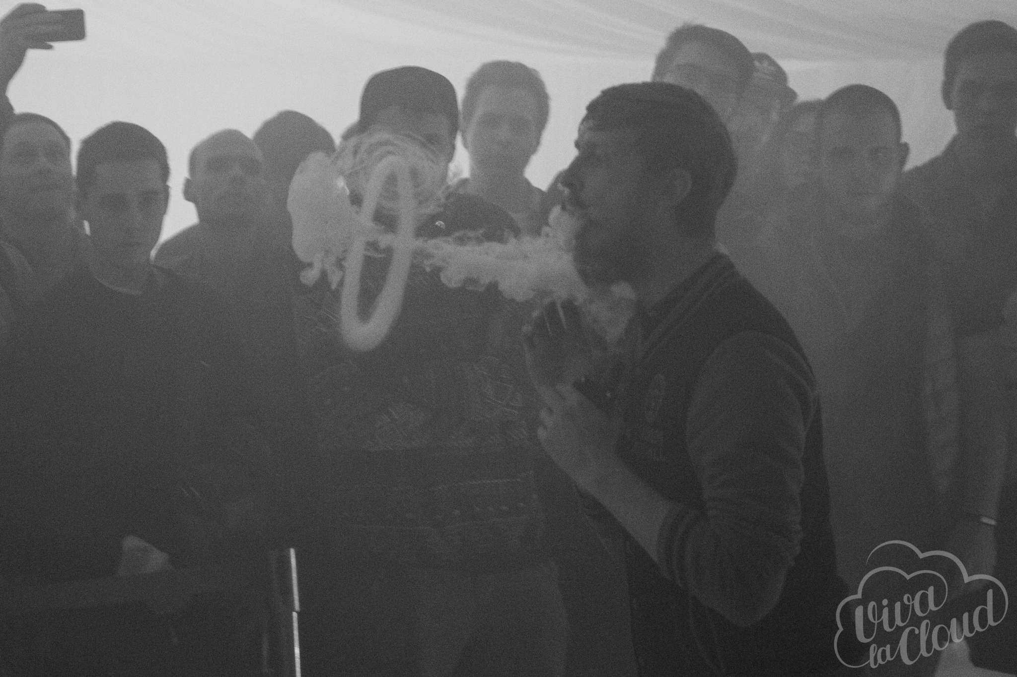Самая грустная часть «Невского Вейпа II». Проблемы было две: место и количество участников. Vape Tricks проходили в абсолютно белом шатре — собственные кольца почти невозможно было увидеть. А участвовало всего 2 человека.