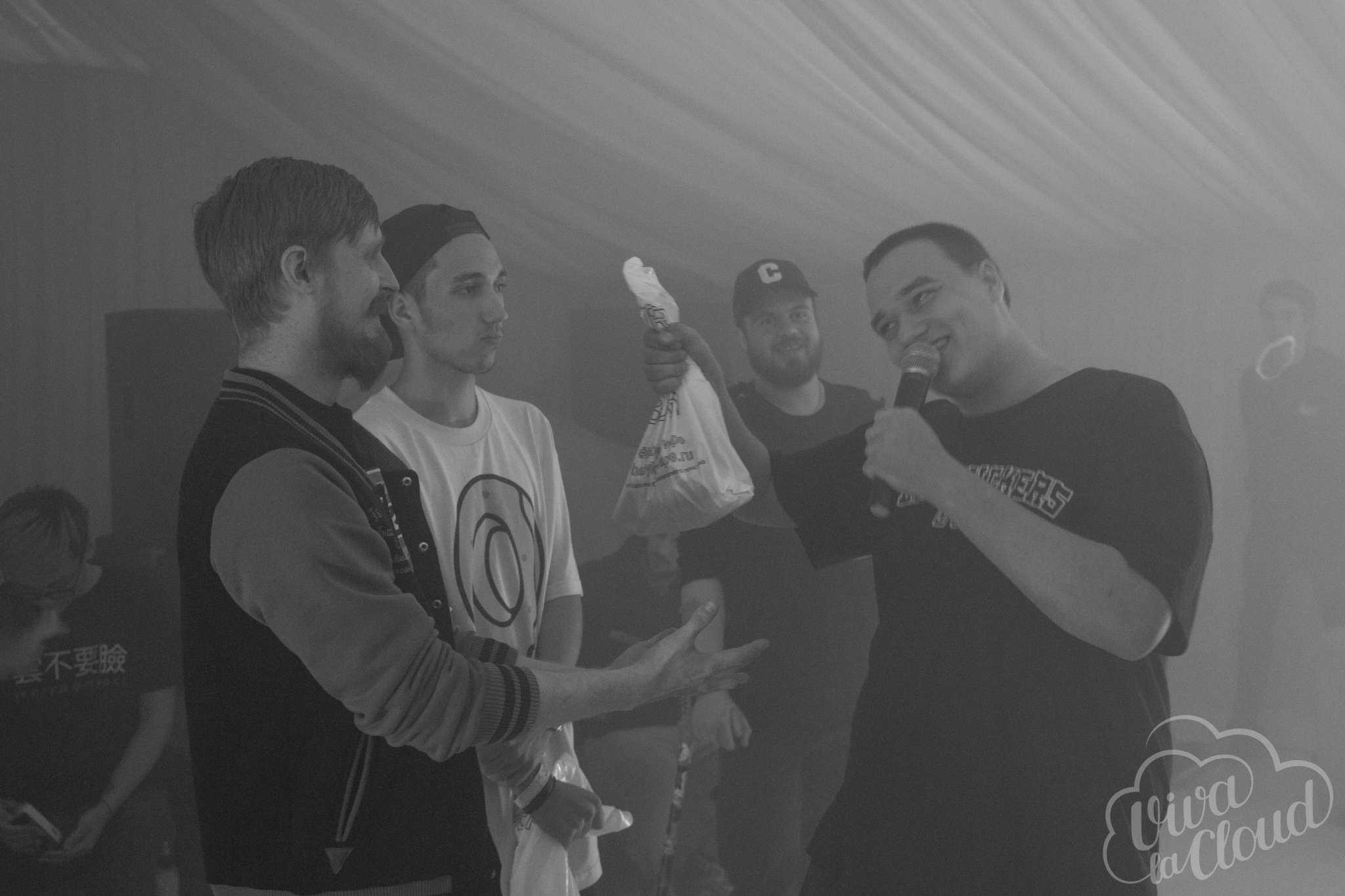 Судили соревнование: Андрей Вялых («Всратый вейпинг»), Алдиан Дадьянов (ViVA la Cloud) и приглашенный гость, Энди Картрайт.