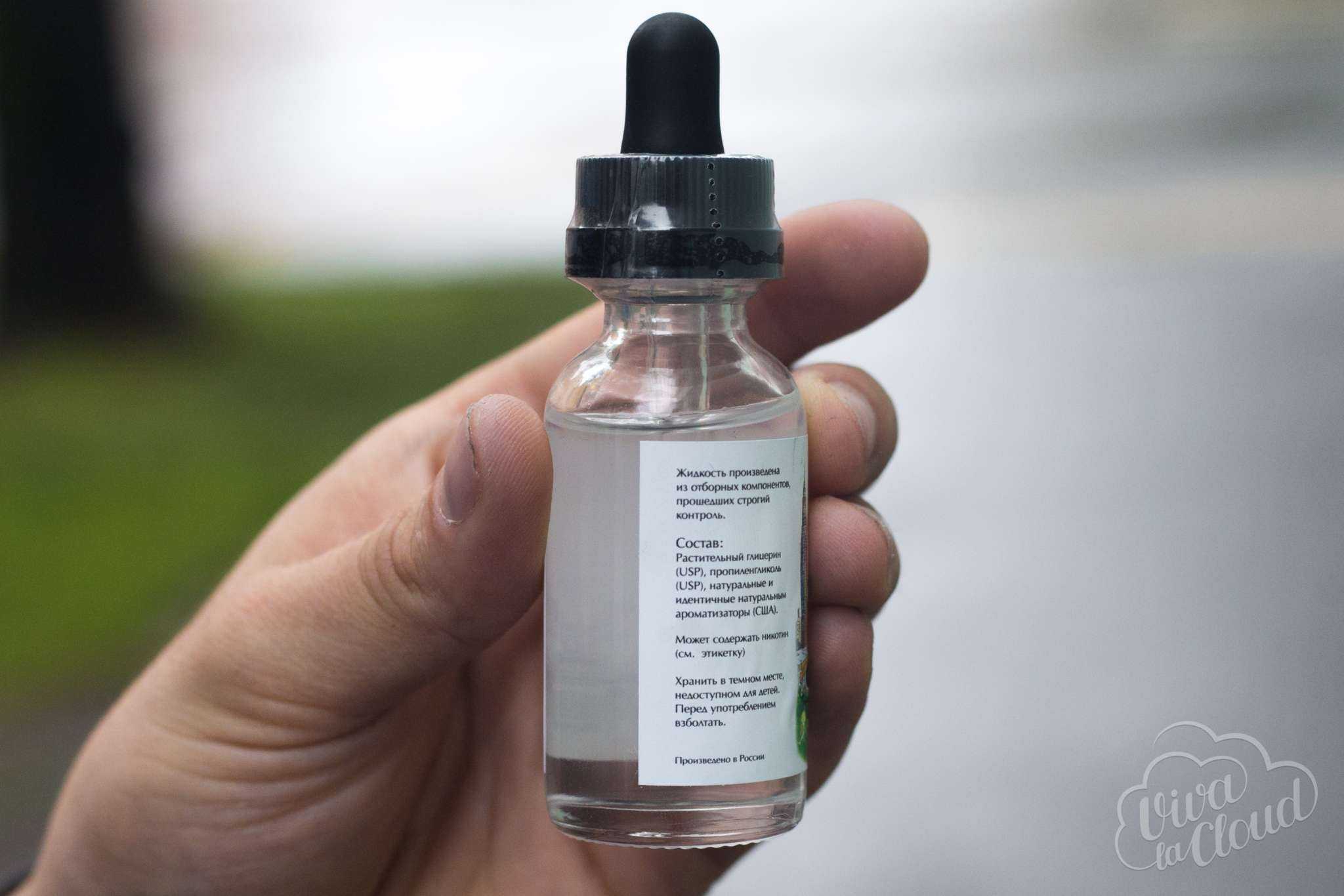 К нам линейка приехала крепостью 1.5 мг. Также есть варианты с 0, 3, 4.5 мг никотина. Объем — 30 мл. Баланс VG/PG — 70/30.