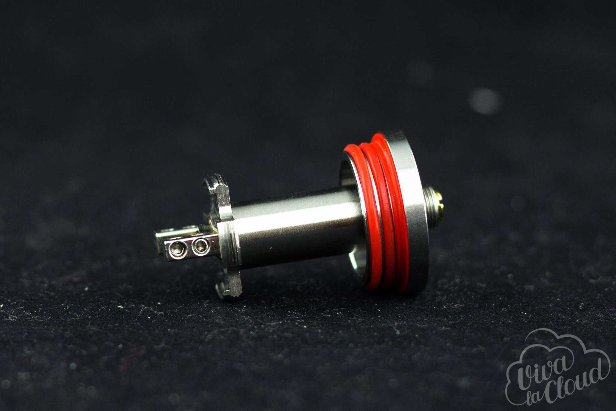 База огромная. На ней располагаются две уже привычных Velocity-стойки с отверстиями диаметром в 2 мм, позволяющие установить достаточно массивные намотки. Фиксируют все это великолепие винты с внутренними шестигранниками (со всеми вытекающими минусами), однако за все время использования резьба, на удивление, не сорвалась. Также на базе располагаются угловые проточки для ваты, совсем чуть-чуть превосходящие по площади (4 мм) отверстия в баке-конкуренте Avocado 24.