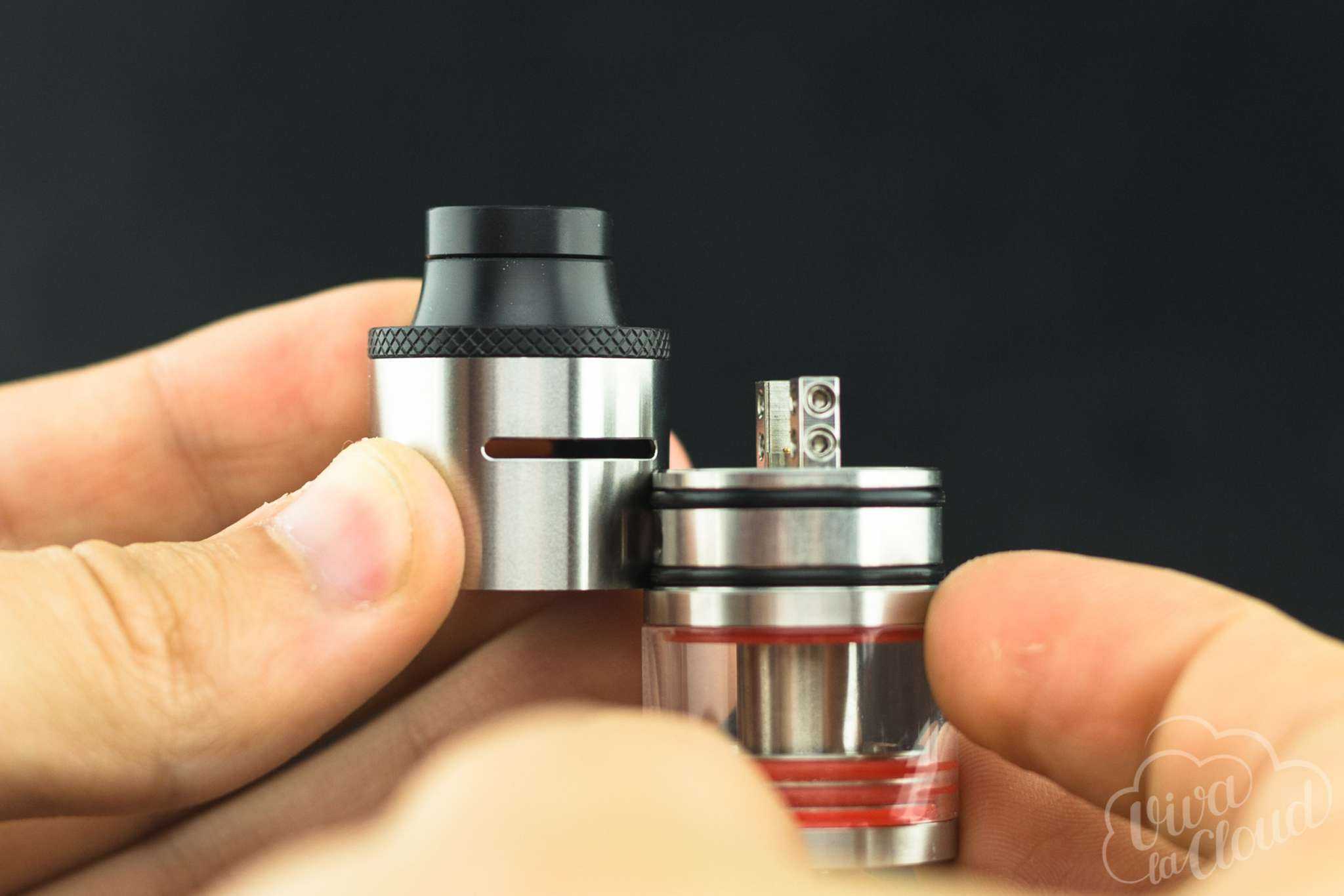 После заправки одевается юбка, закрывающая заправочное отверстие — просто и удобно. Однако и тут есть нюанс: после заправки на юбке остаются подтеки жидкости. Зато в ней присутствуют широченные отверстия обдува — моднейшие «койлы-колбаски» будут чувствовать себя как дома. По высоте отверстия находятся практически в самом низу базы, что достаточно благоприятно сказывается на вкусе.