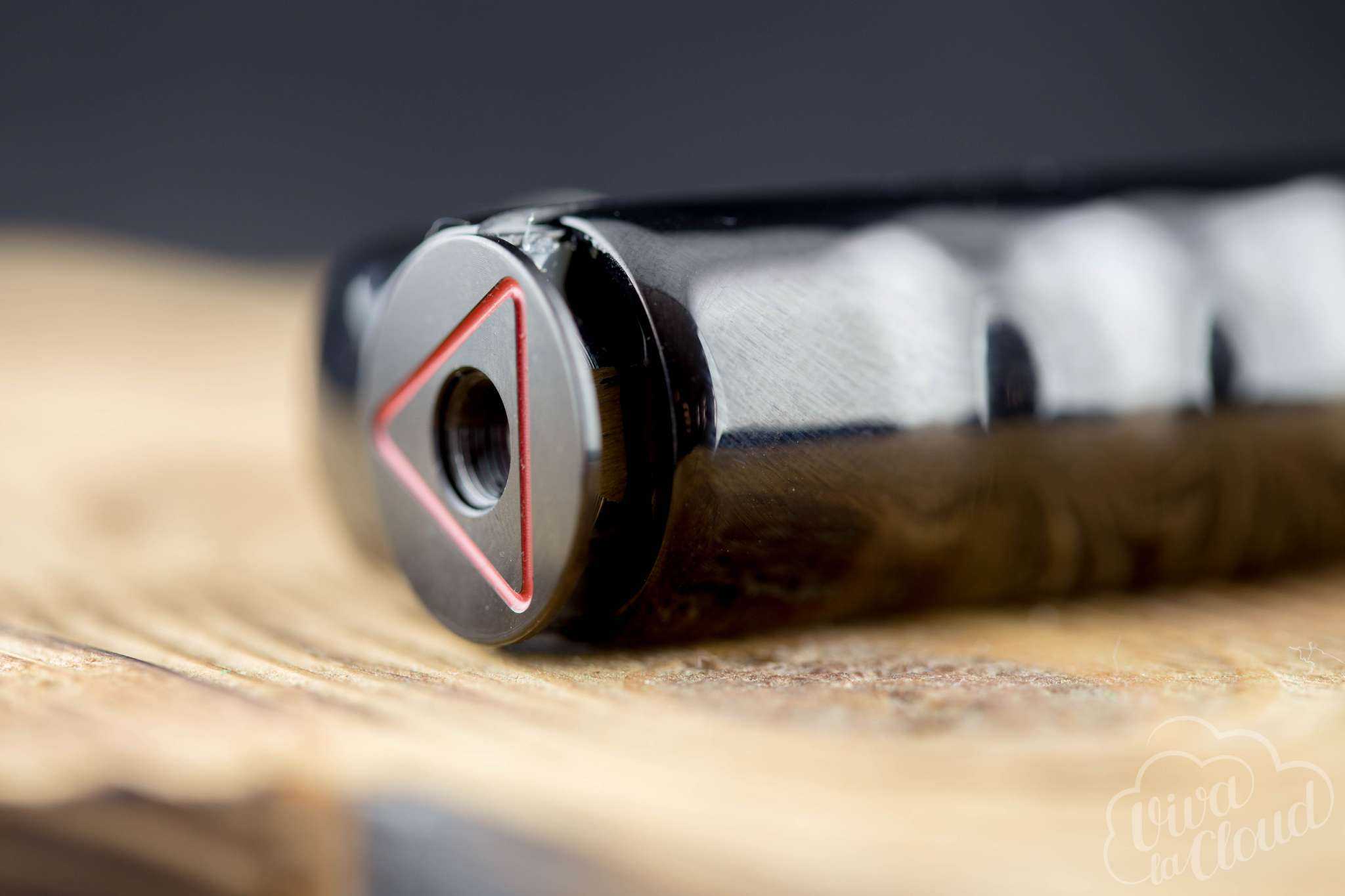 На задней стороне расположена как бы крышка — аккумулятор не съемный, она держится на крайне мелком шестиграннике, ключ к которому найдется далеко не у каждого вейпера.