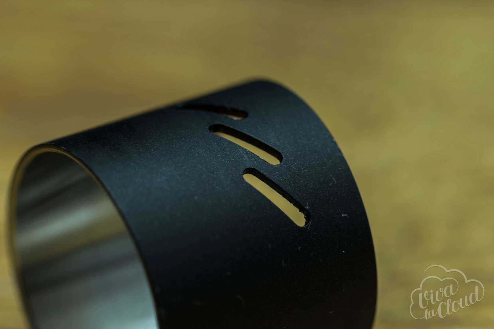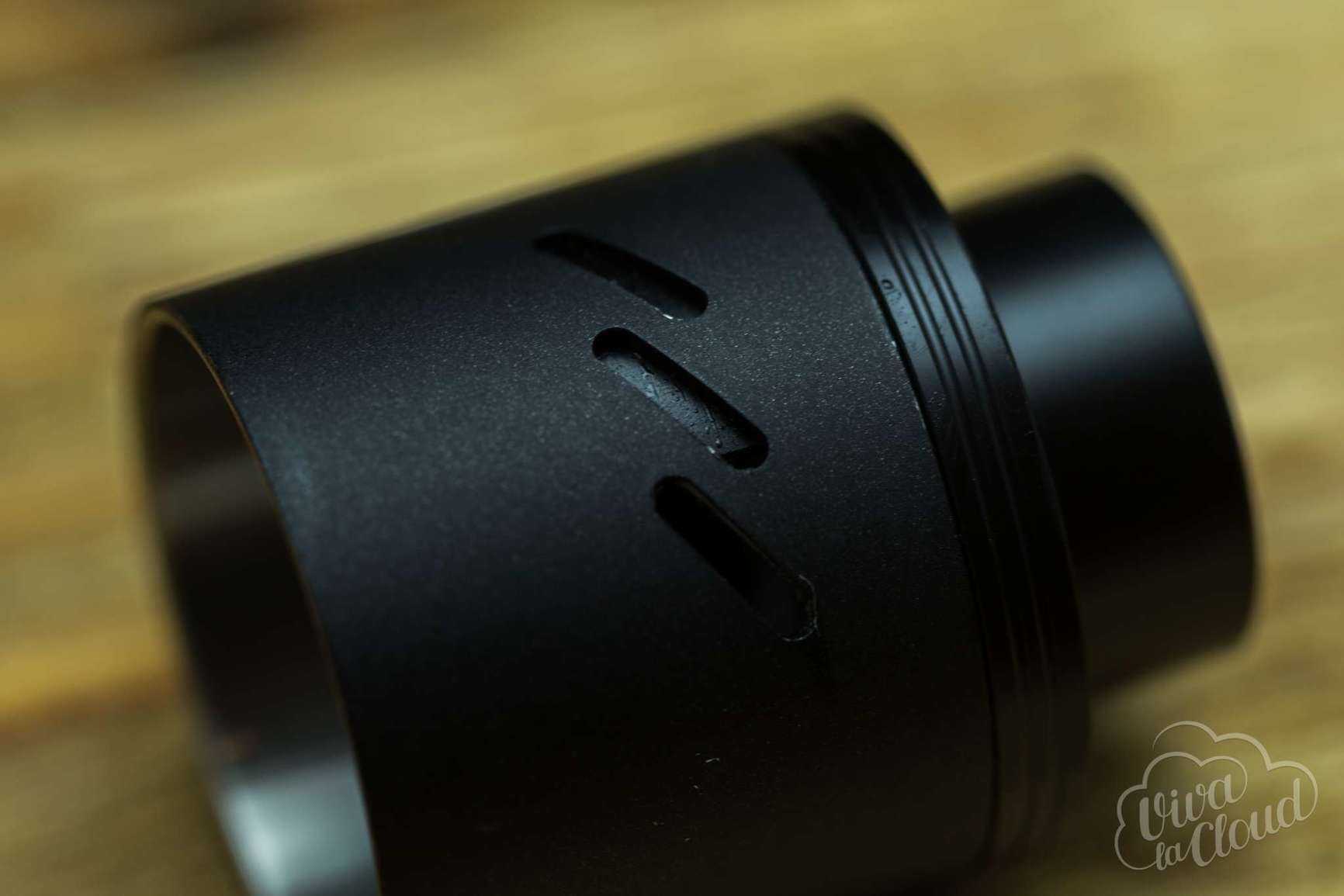 Обдув немного отсылает нас к Troll RDA. Это три наклоненные под 45 градусов отверстия по 7 мм в длину, с возможностью прикрытия. Реализовано это с помощью топ-кепа с встроенной регулировкой обдува.