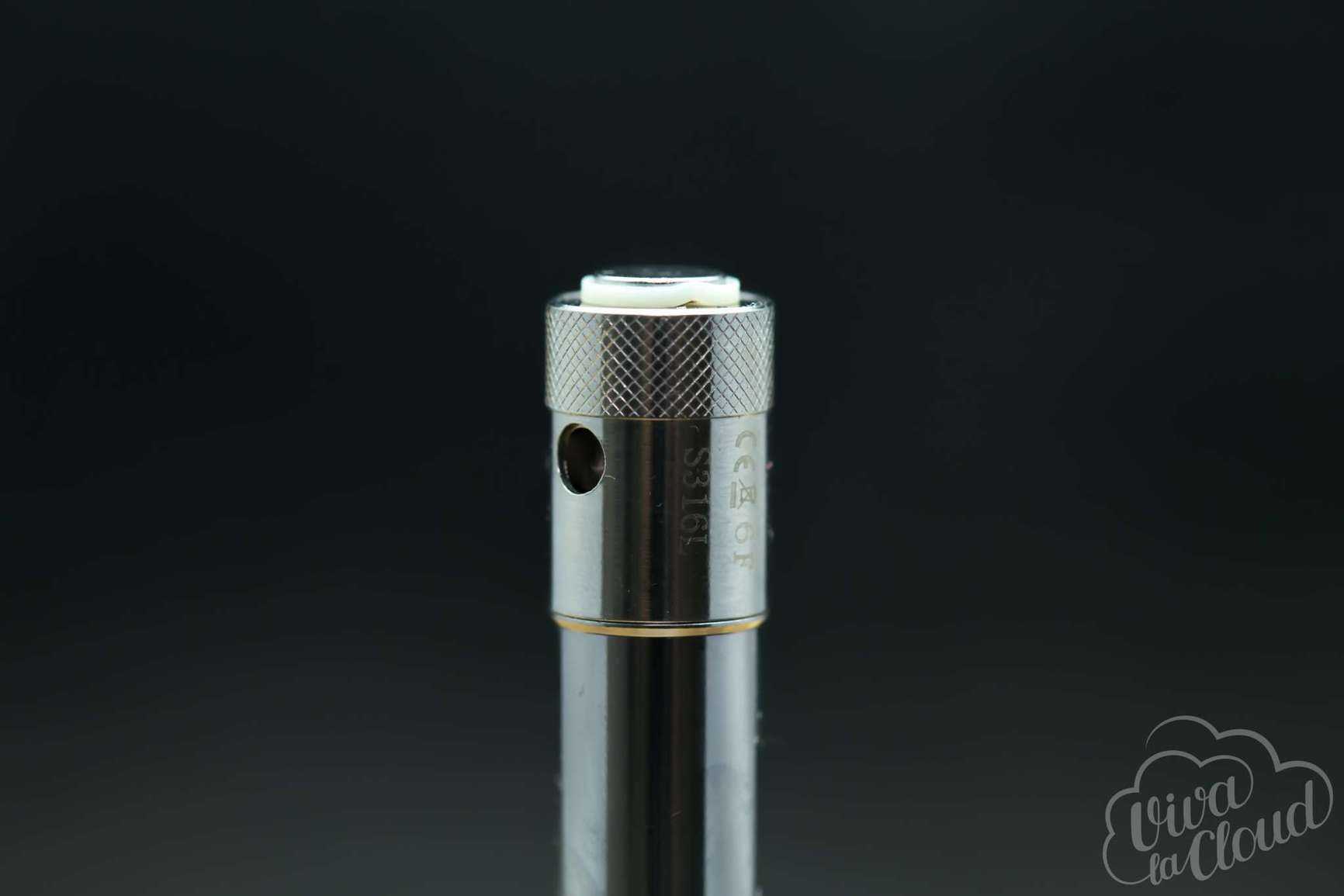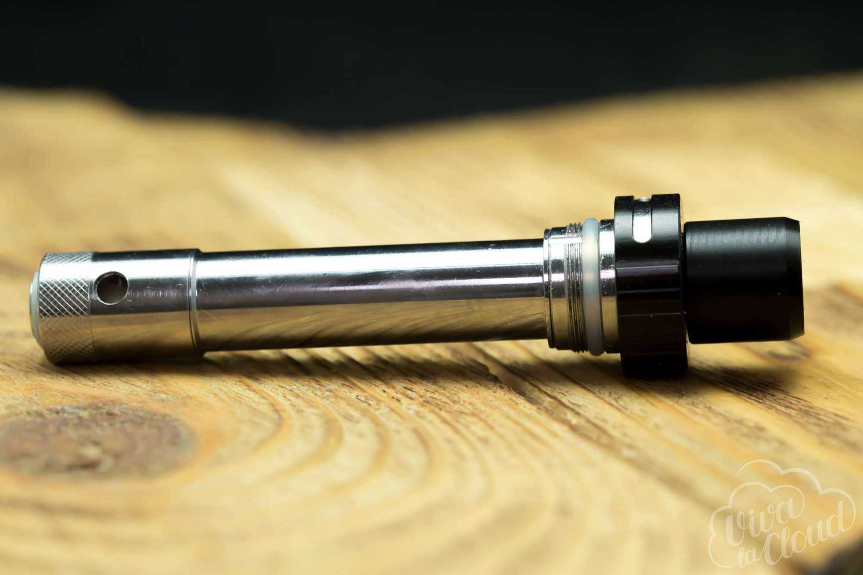 Замена испарителя, заправка или установка собственного атомайзера осуществляется при помощи выкручивания шахты.