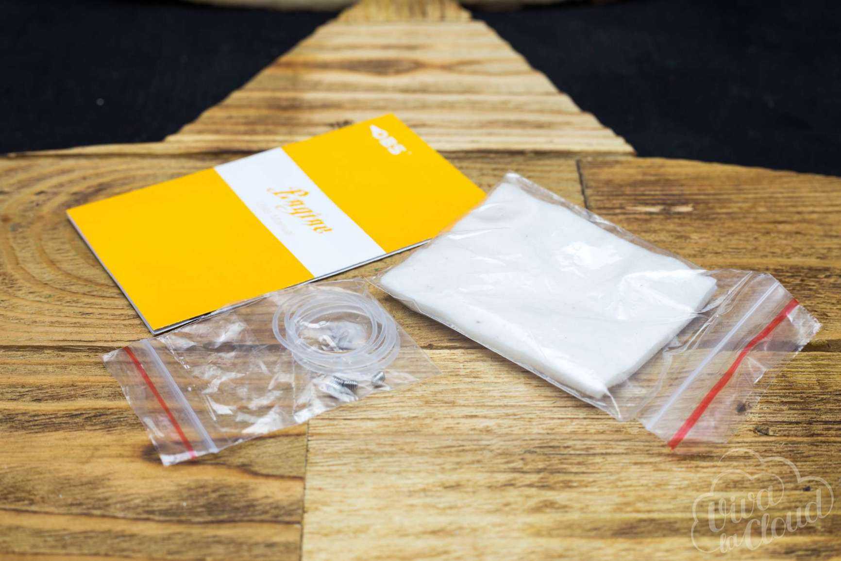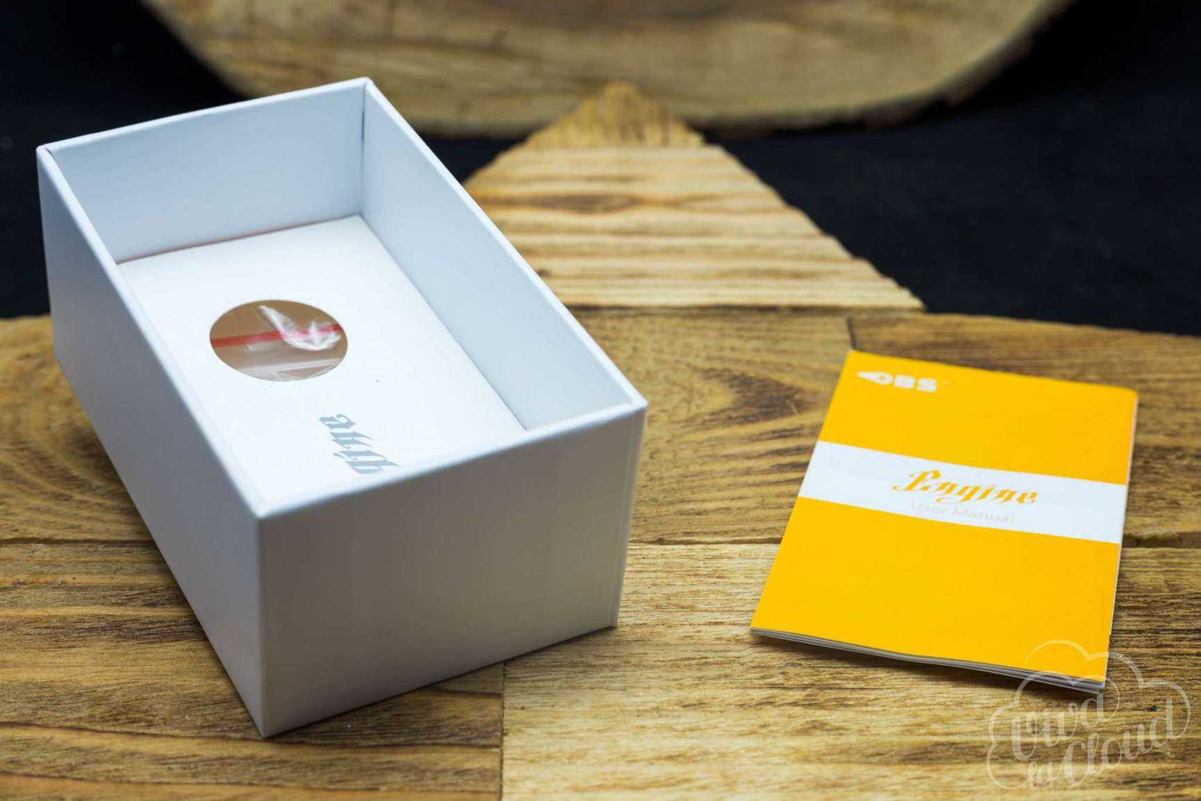 Продается Engine в картонной коробке, вполне симпатичной и прочной. Открыв упаковку, вы увидите весьма скудный комплект: отвертку да запасное стекло. Однако, в недрах коробки скрывается еще одна коробочка с запасными болтами, орингами и квадратным листиком хлопка. Никаких других бонусов пользователю не положено.