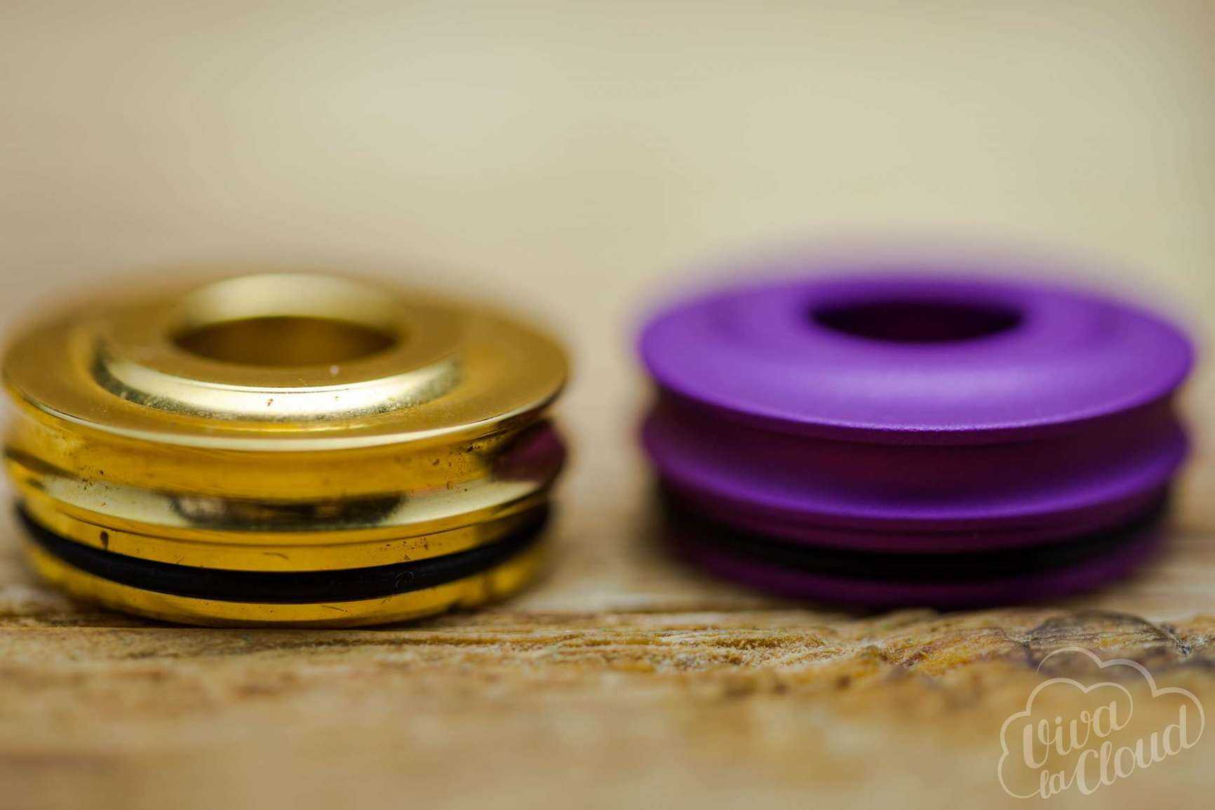 Еще одним вариантом апгрейда может быть и замена стандартных топ-кэпов на более широкий. Он также выполнен из анодированного алюминия, а вот дрип-тип сделан уже из акрила.
