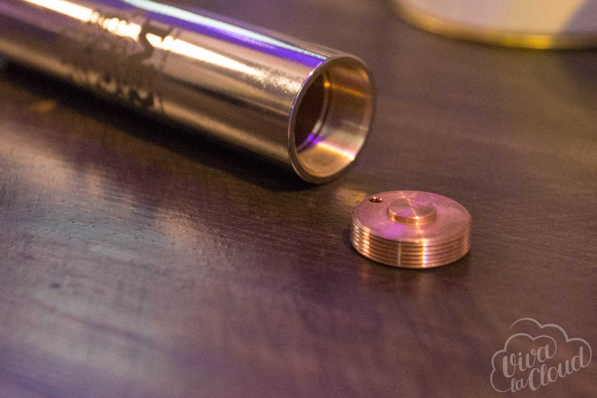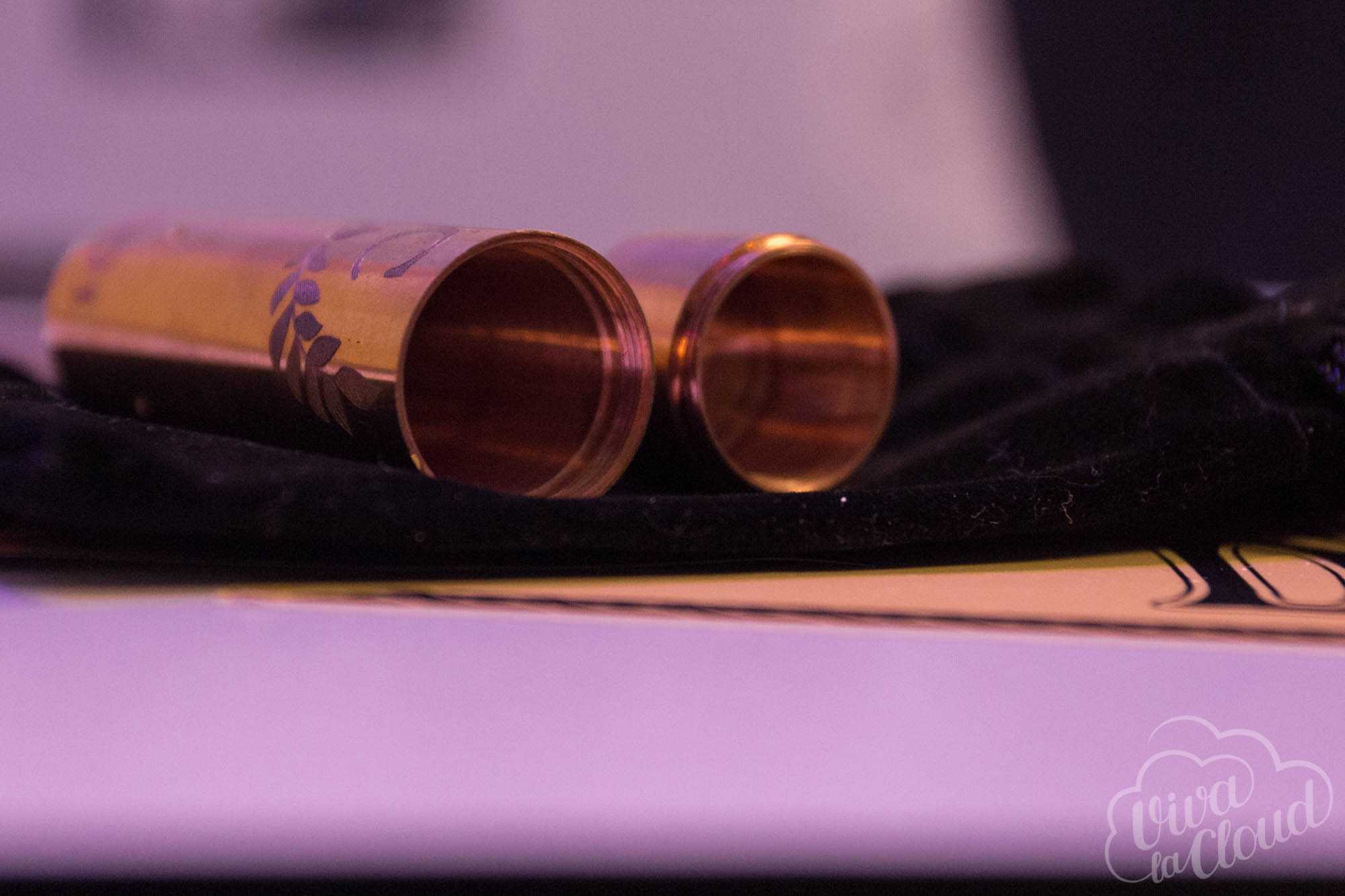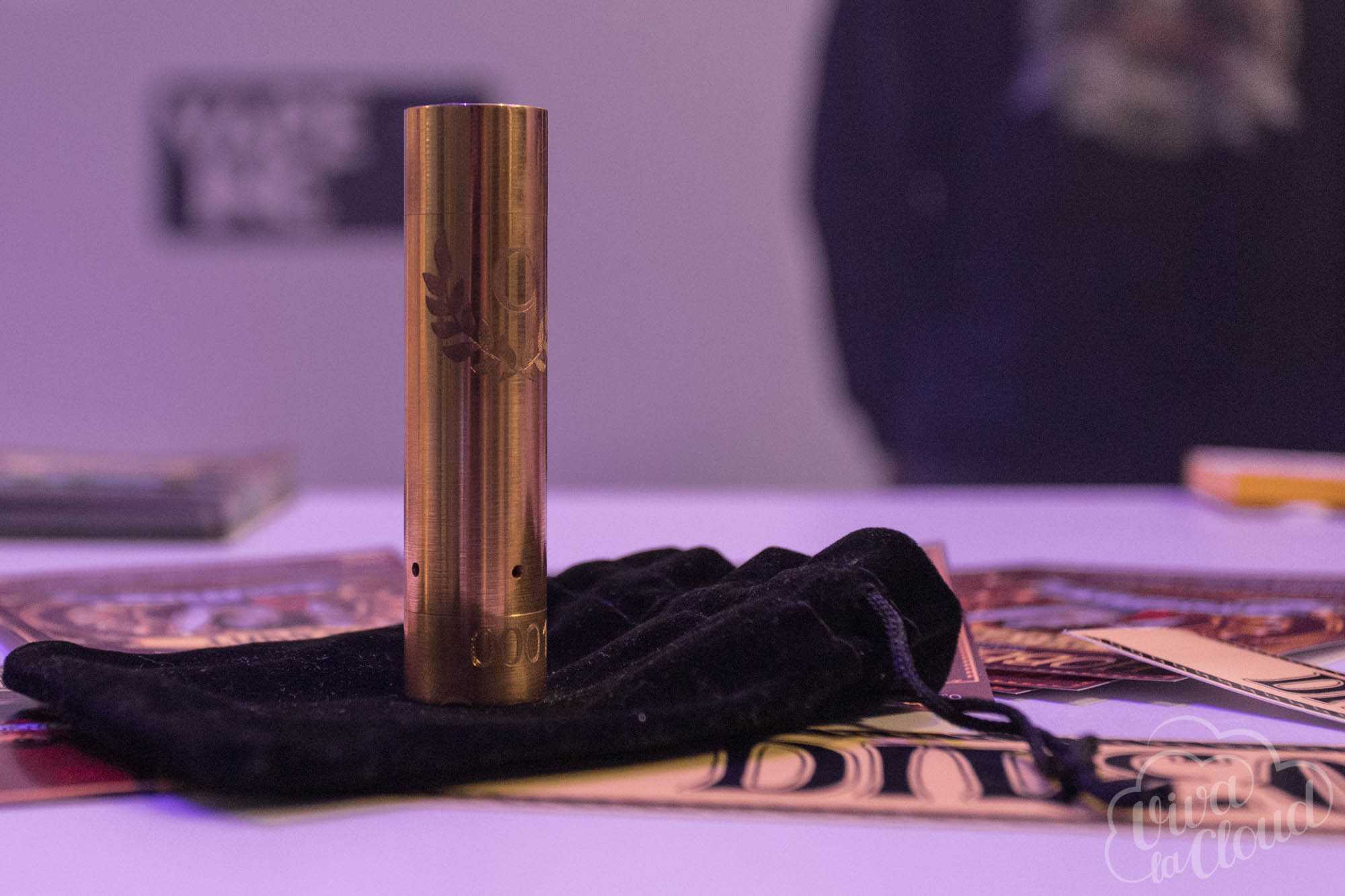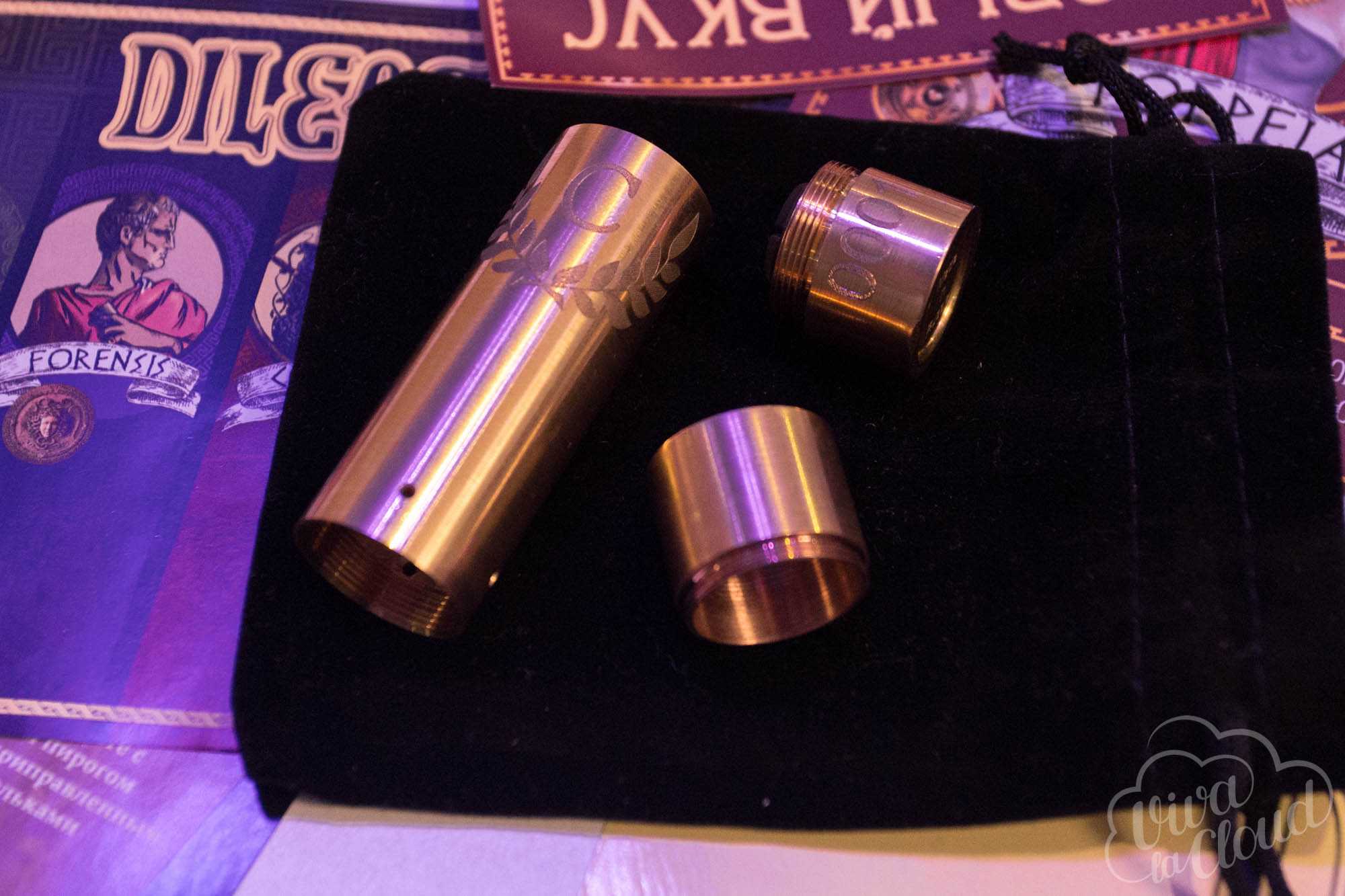 Мехмод Dileomit представляет из себя позолоченную медную трубу диаметром 22 мм. По словам производителя, версия под атомайзеры диаметром 24 мм появится чуть позже.