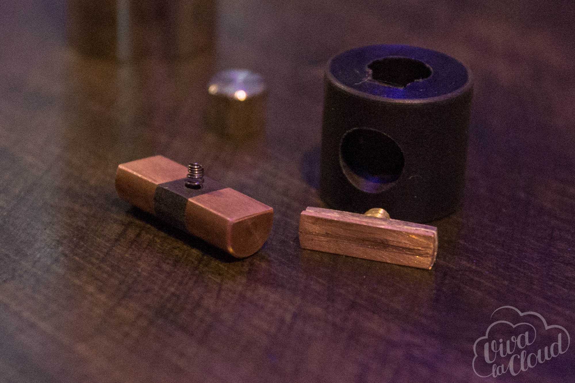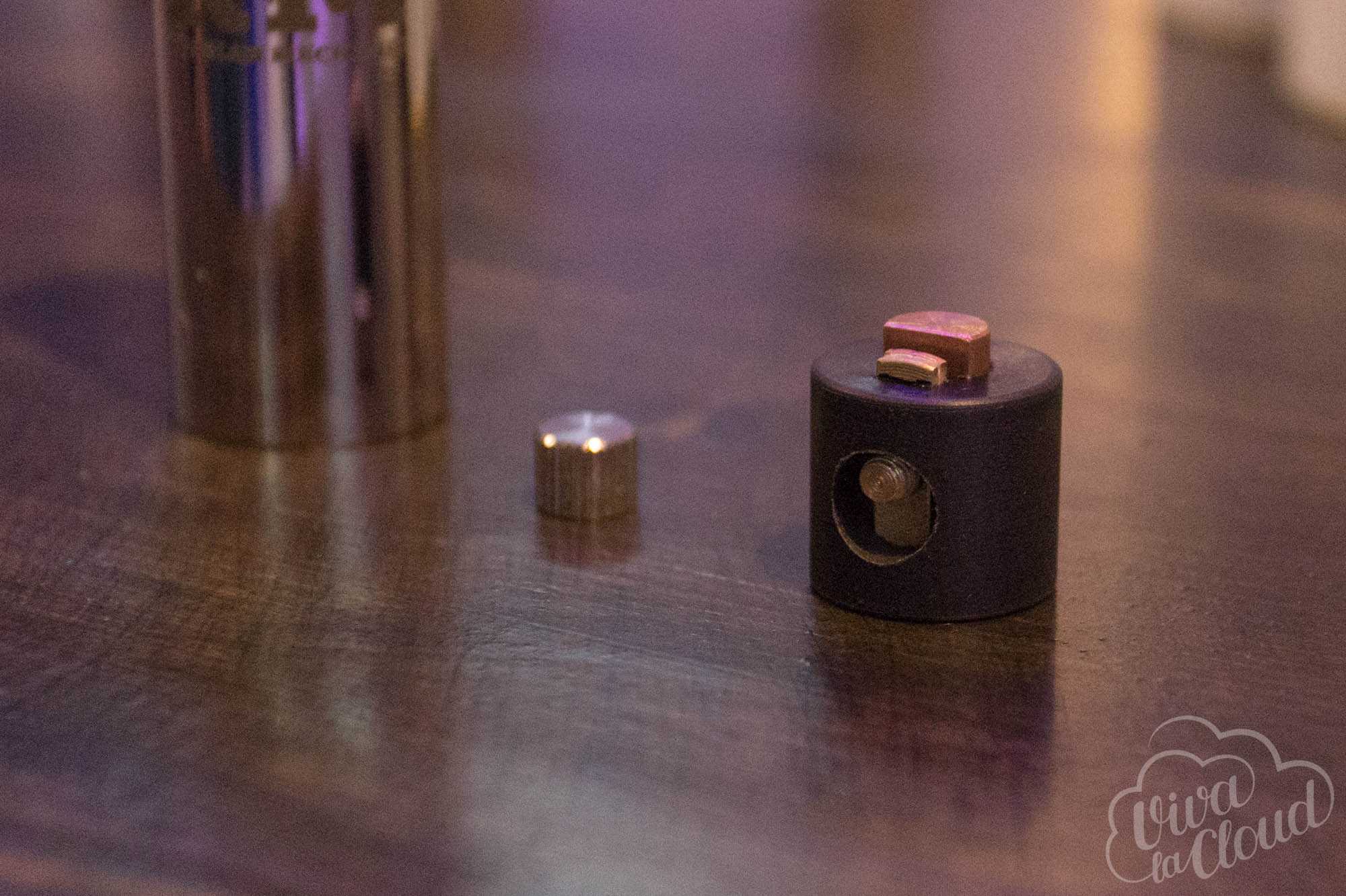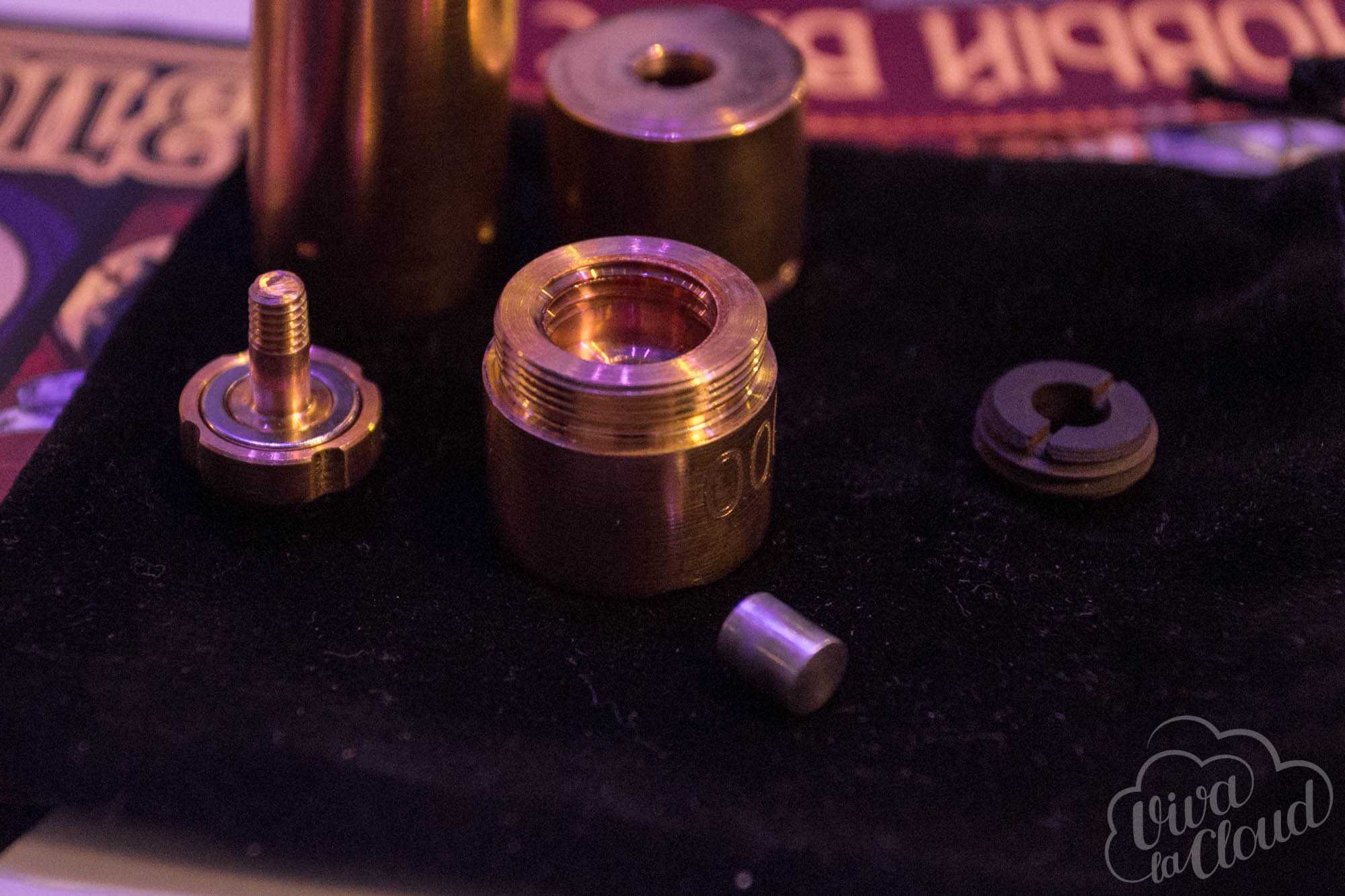 Вся магия происходит в непосредственно верхней части механического мода, где цепь замыкает латунно-медный «сэндвич» из двух пластин. Находится эта конструкция в большом пластиковом кожухе и легко разбирается для чистки.
