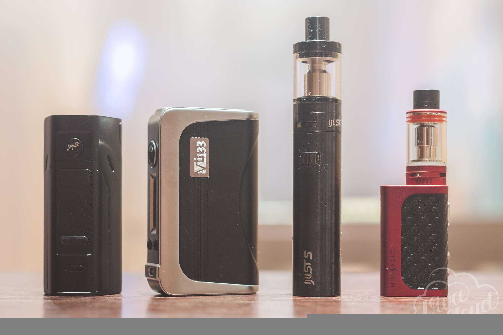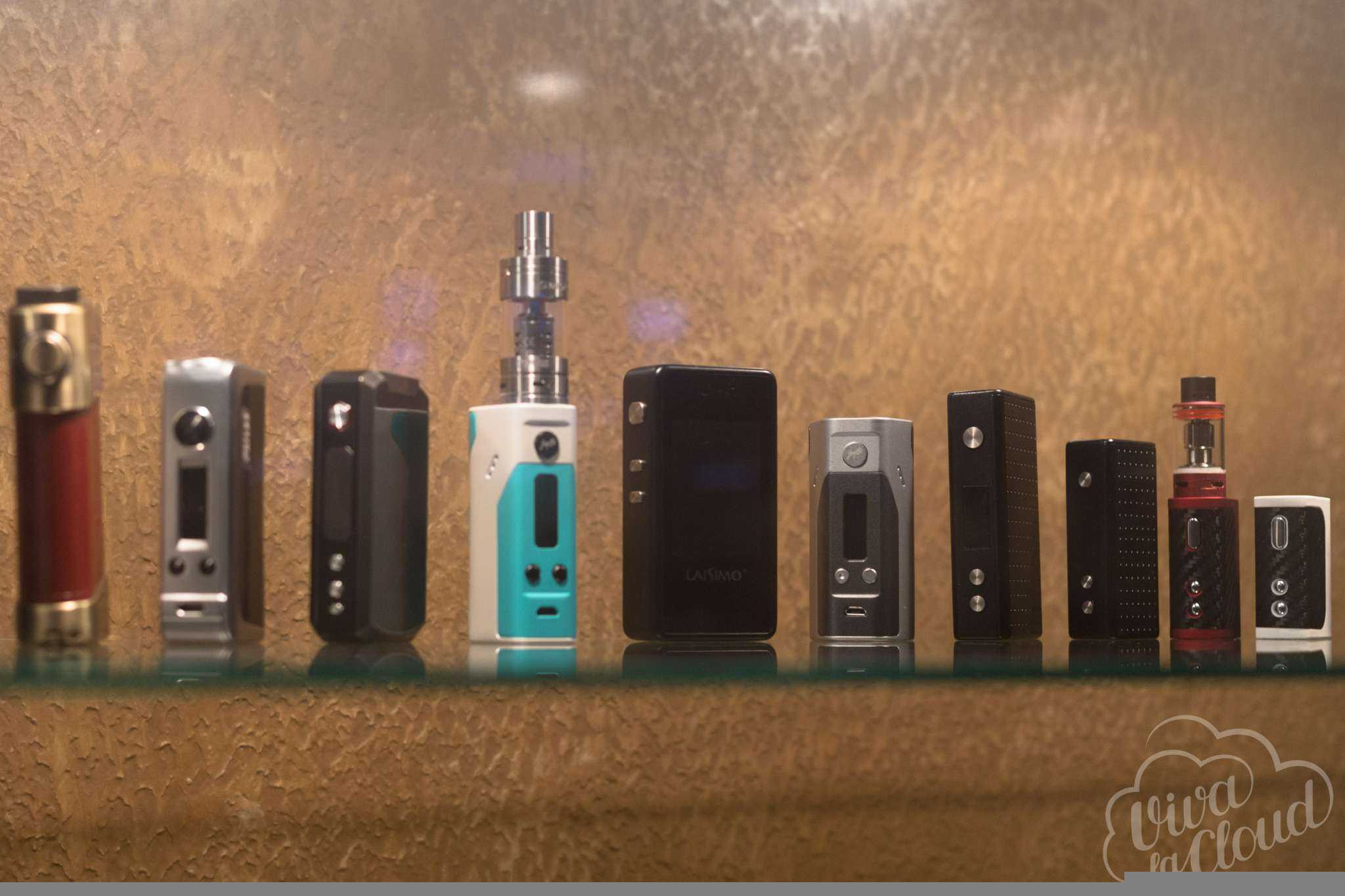 Среди мириады устройств на плате нам удалось найти даже два редких, но очень нелепых мода: Kamry 200 на 3х18650 с кожей и боксмод от Laisimo с тачскрином.